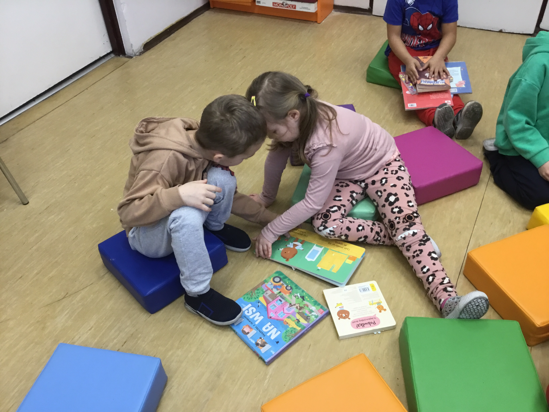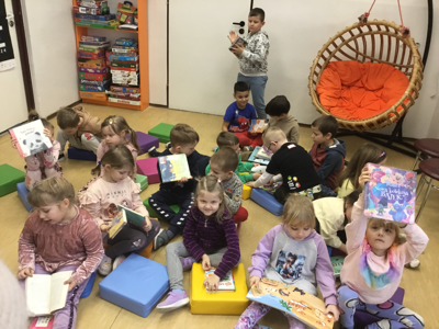 Ta forma czytania bardzo się dzieciom podobała, wywołała wiele emocji i uśmiechu. Na zakończenie spotkania dzieci wypożyczył książki.