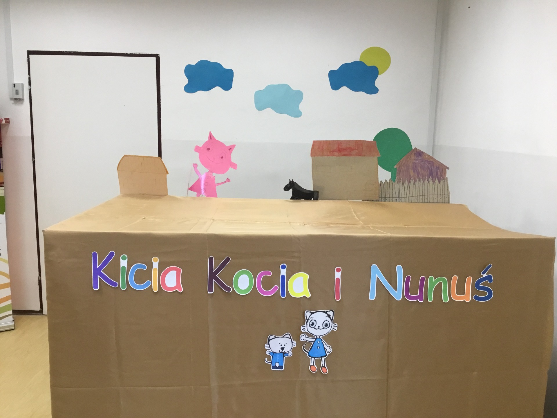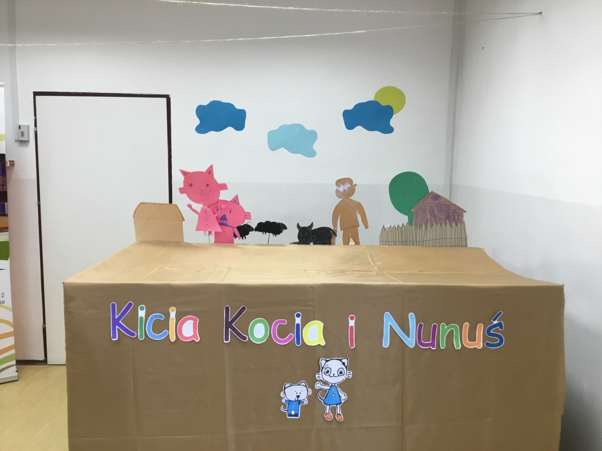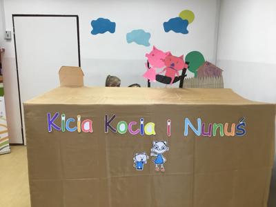 Przedstawienie bajki o Kici Koci i Nunusiu pt. "Kto mieszka w zagrodzie?" wymagało od dzieci pracy zespołowej, dużo skupienia i uwagi. Mali aktorzy doskonale wcielili się w bohaterów ręcznie wykonanych przez nich postaci z papieru, a sam spektakl wywołał wśród rodziców bardzo dużo śmiechu. Dziękujemy za mile spędzony czas.