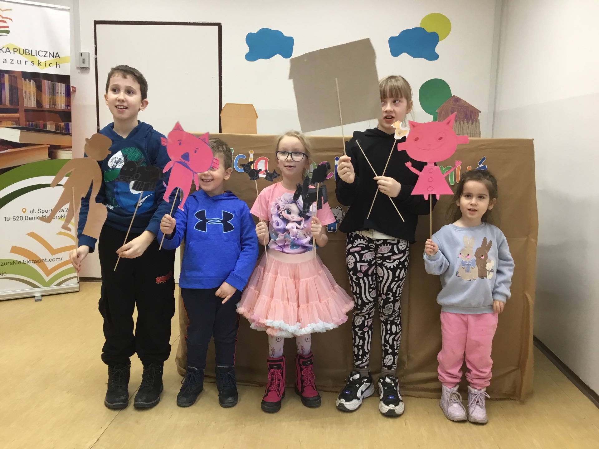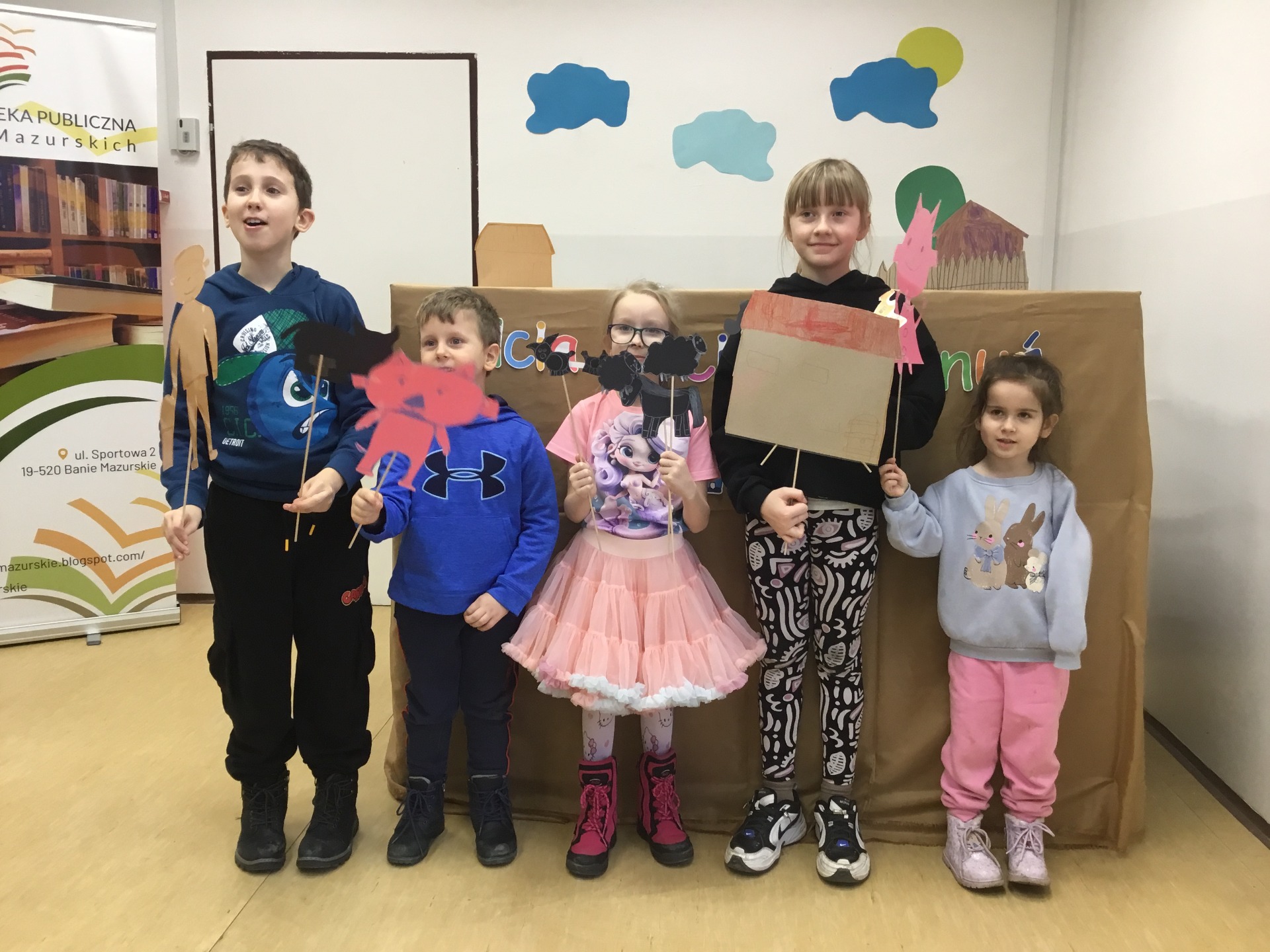 W tym dniu do Gminnej Biblioteki Publicznej w Baniach Mazurskich przybyli także rodzice, by obejrzeć spektakl teatralny w wykonaniu swoich pociech.