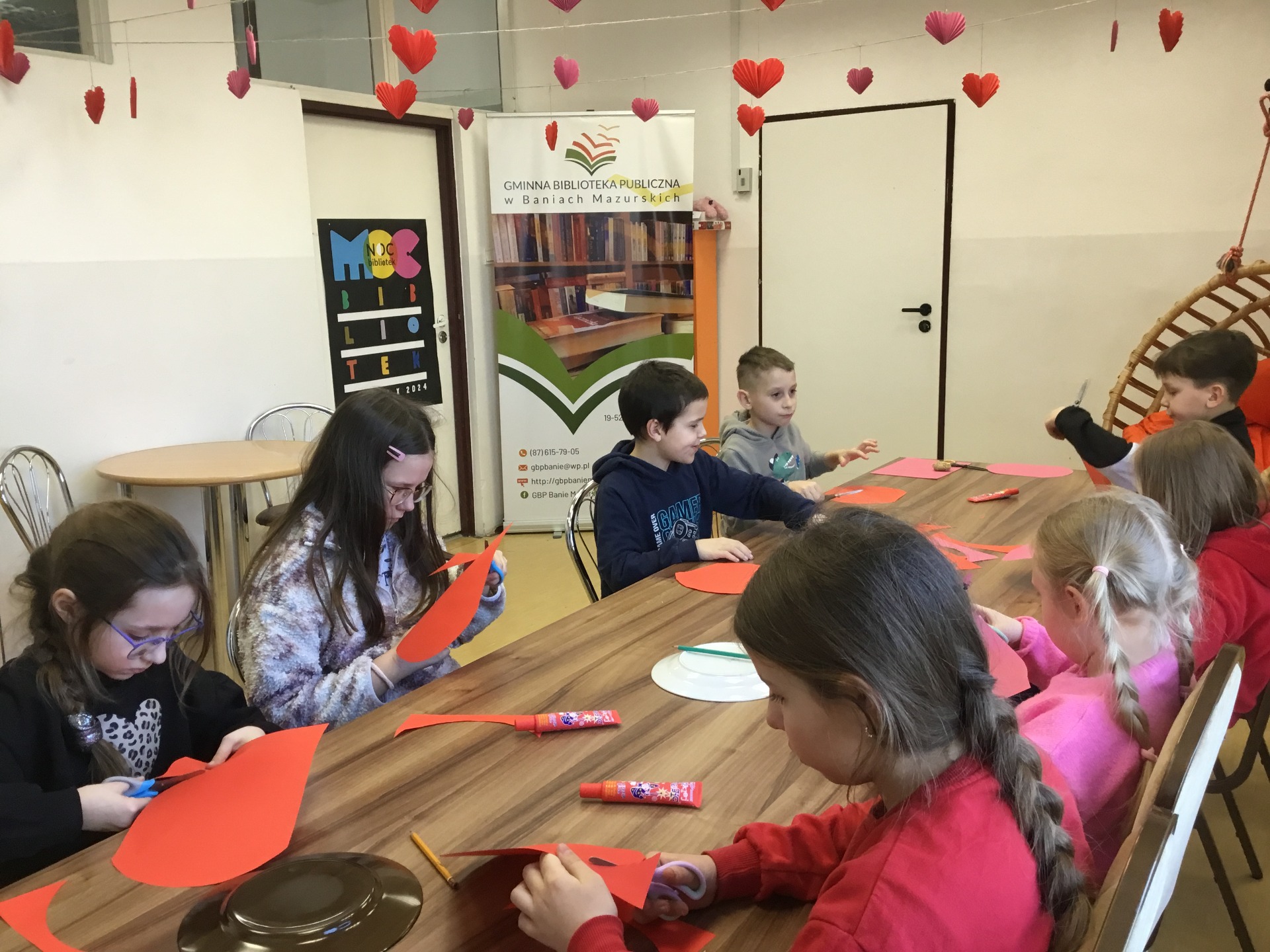 13 lutego w Gminnej Bibliotece Publicznej w Baniach Mazurskich odbyły się przepełnione miłością warsztaty plastyczne