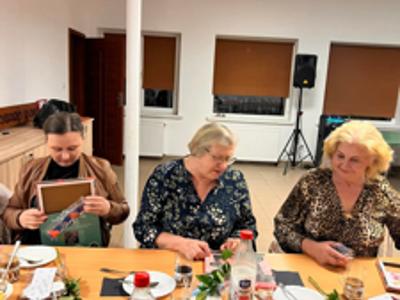 Panie zostały obdarowane przez P. Sołtys Annę Paszko i P. radną Beatę Seredę małym upominkiem od P. Detektor biblioteki Agnieszki Ozimek obdarowała