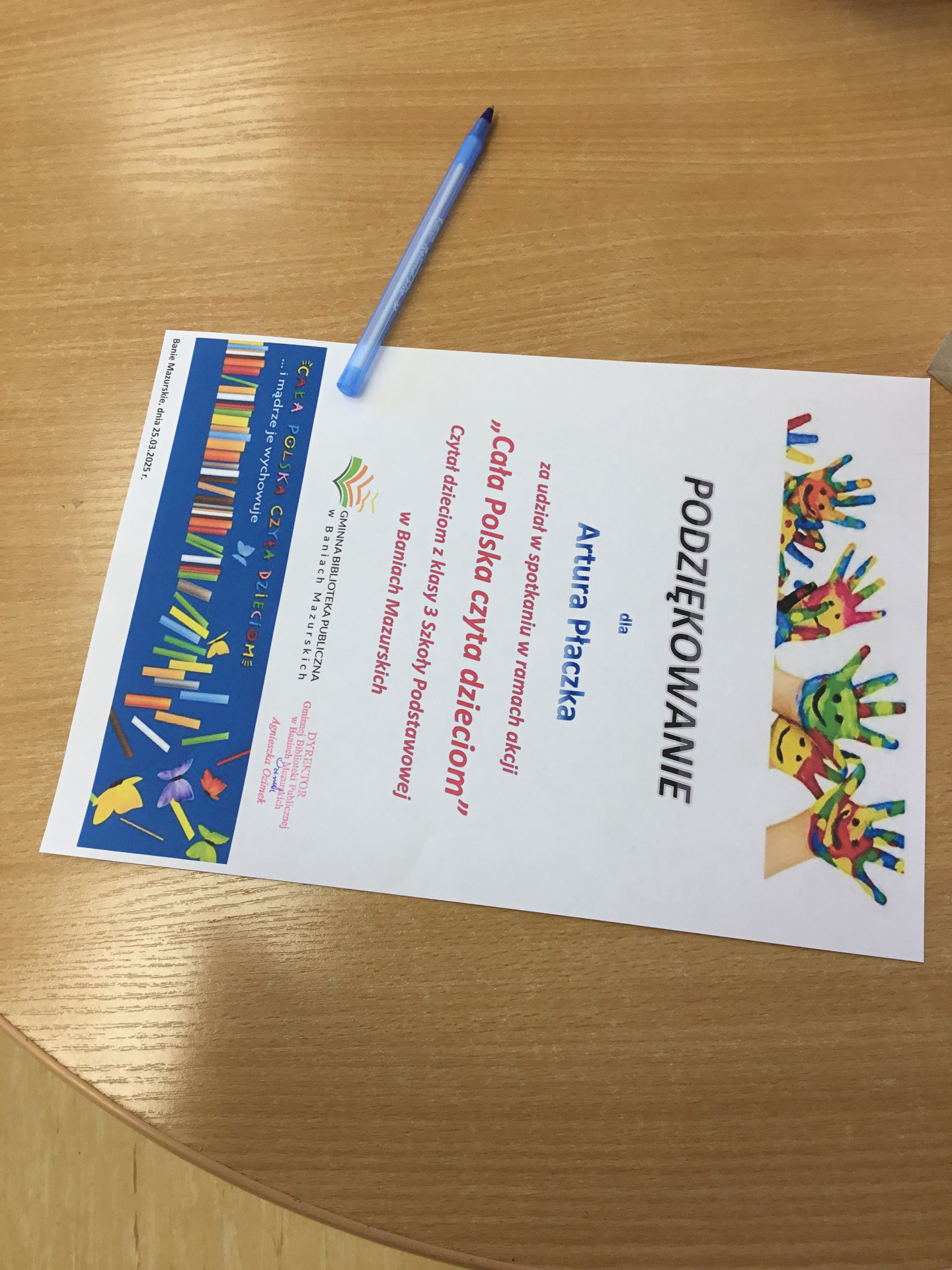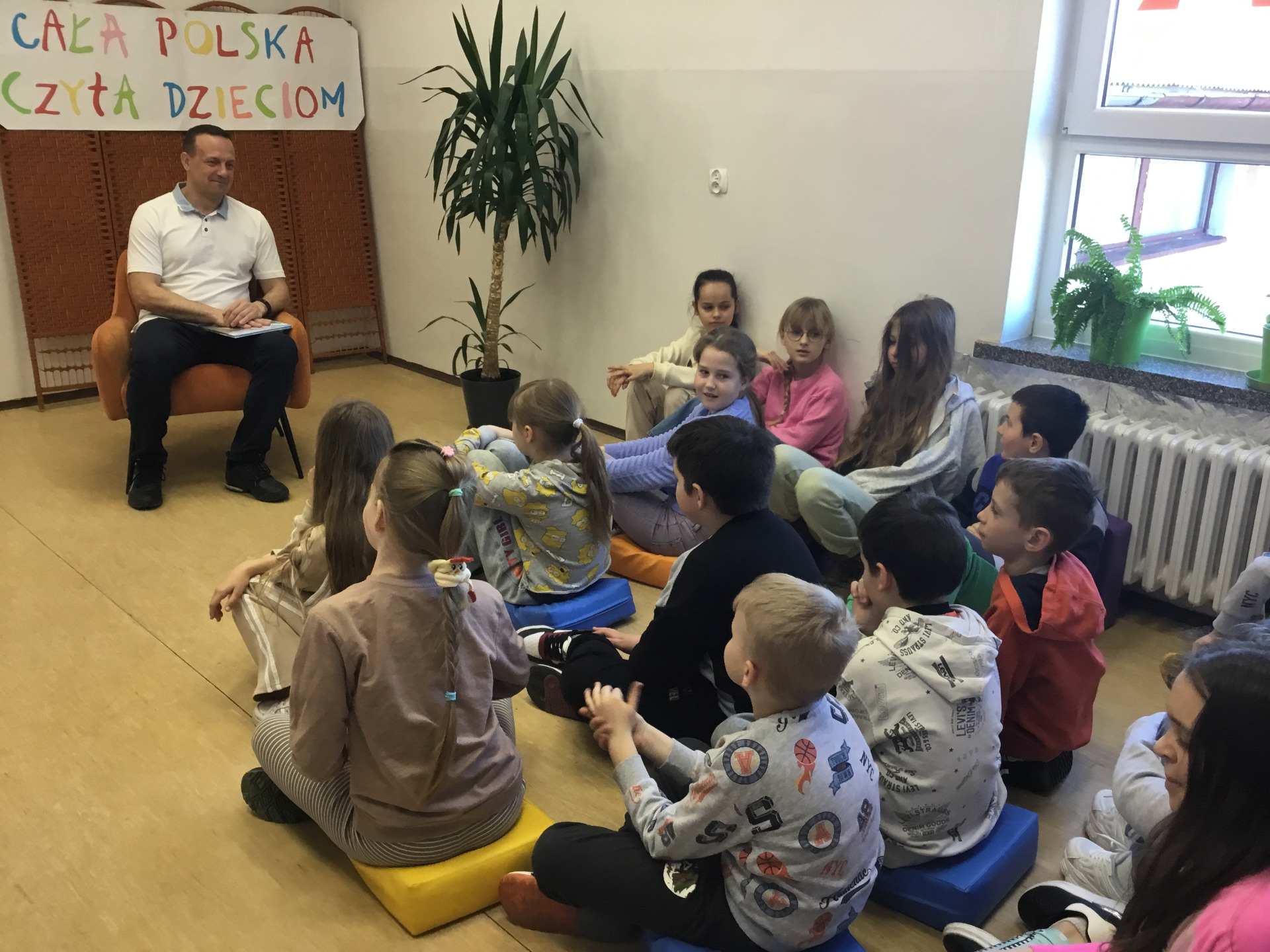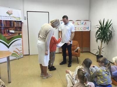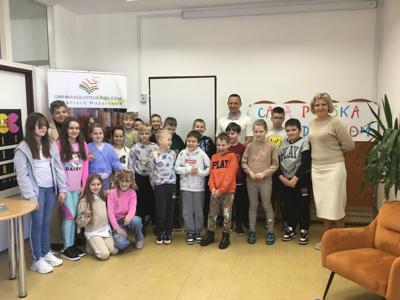 W ramach akcji „Cała Polska czyta dzieciom”, 25 marca 2025 r. w Gminnej Bibliotece Publicznej gościliśmy pana Artura Płaczka, trenera grupy piłkarskiej Orły Baniach Mazurskich.