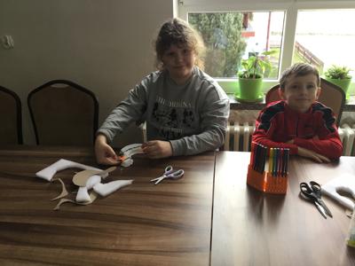 Wykonane prace dzieci zabrały do domu i kaczuszki ozdabiają pokoje małych artystów.