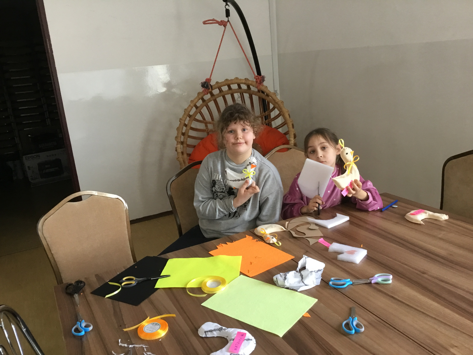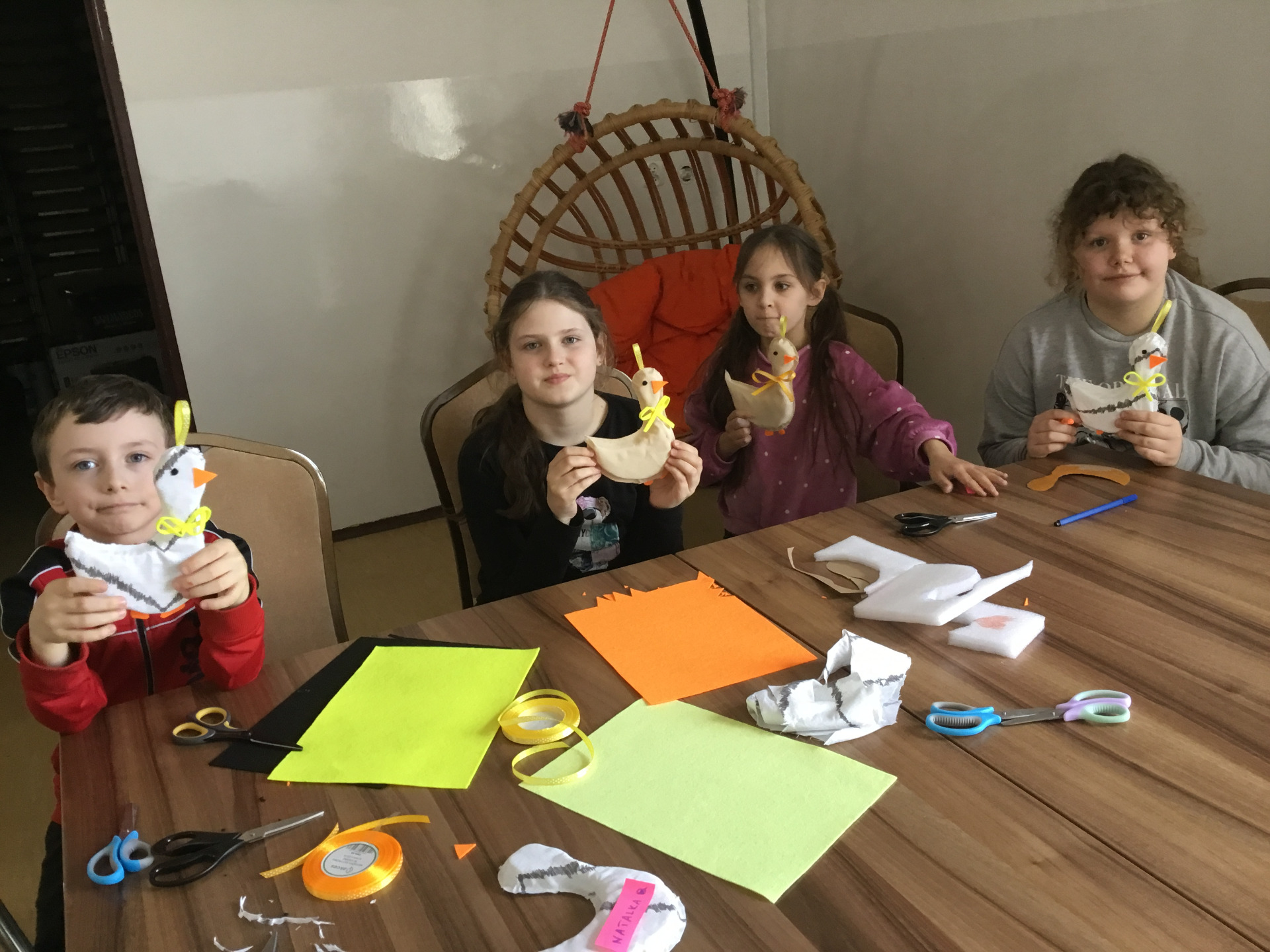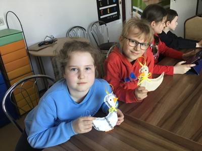 W tym roku dzieci ze świetlicy szkolnej z Zespołu Placówek Oświatowych w Baniach Mazurskich tworzyły wielkanocne kaczuszki. Do ich powstania uczestnicy wykorzystali polietylenowe pianki, tkaninę, filc, wstążeczki i klej.