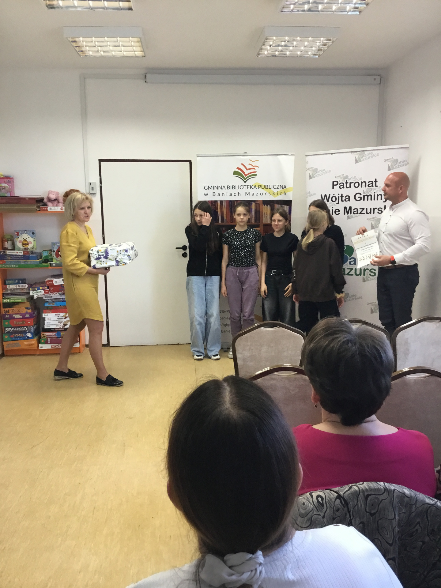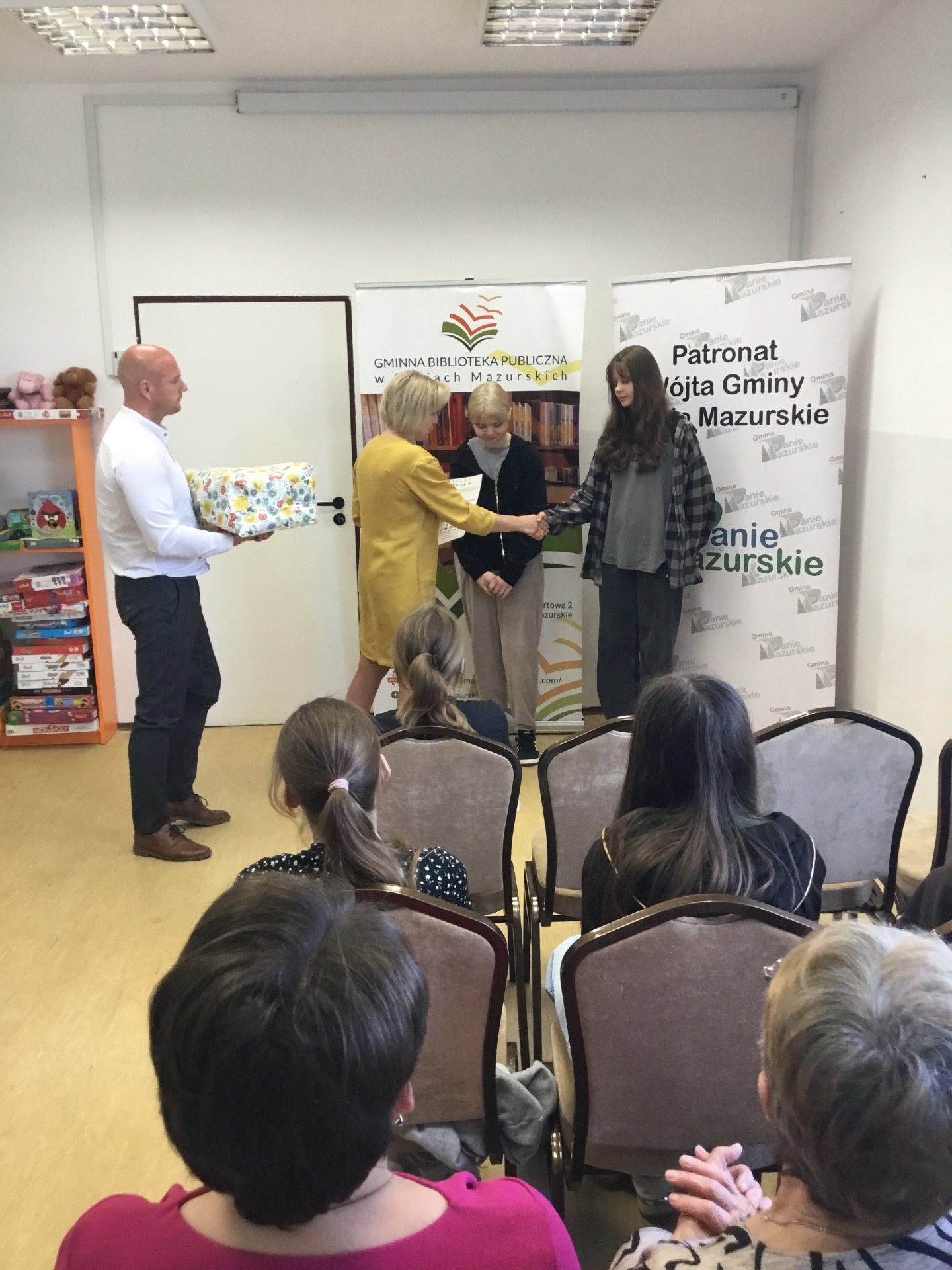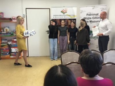 Podsumowanie i rozdanie nagród oraz dyplomów w konkursie plastycznym "Zajączek Wielkanocny" pod Patronatem Wójta Gminy Banie Mazurskie