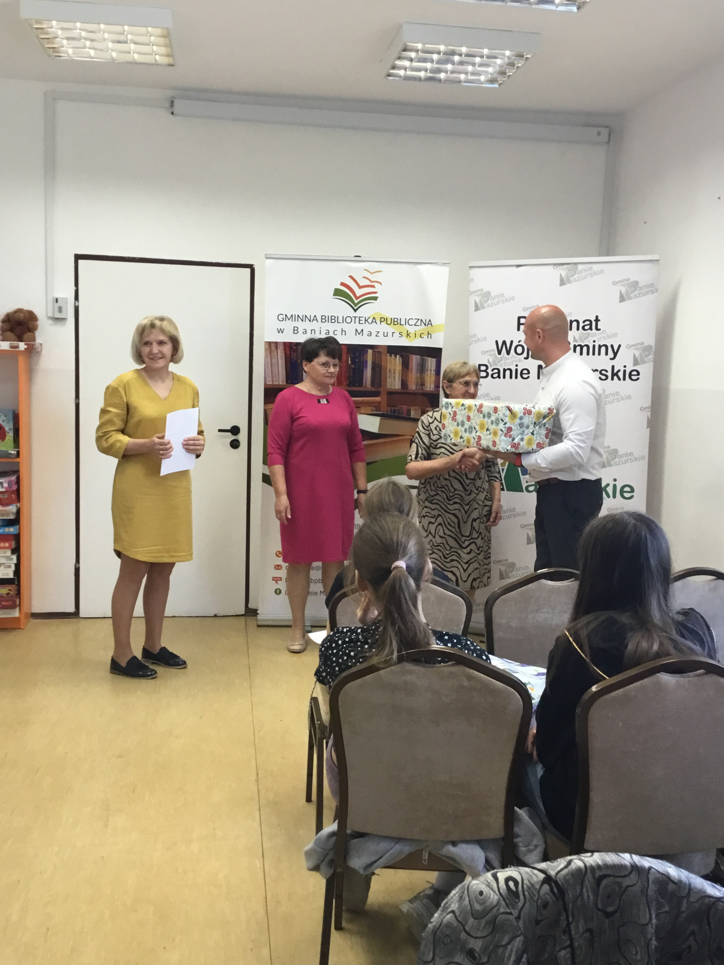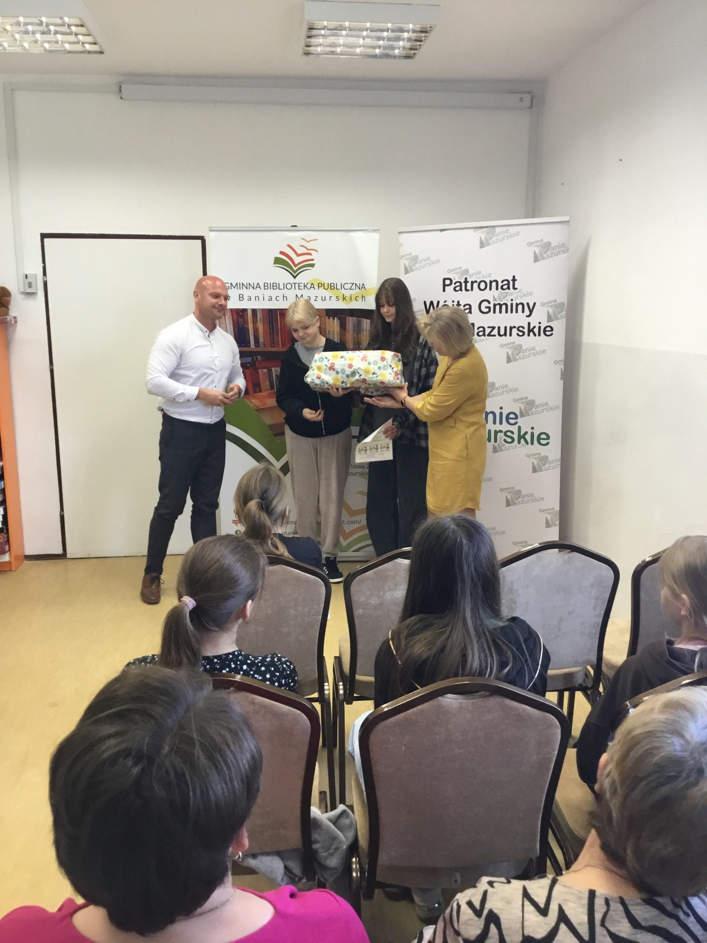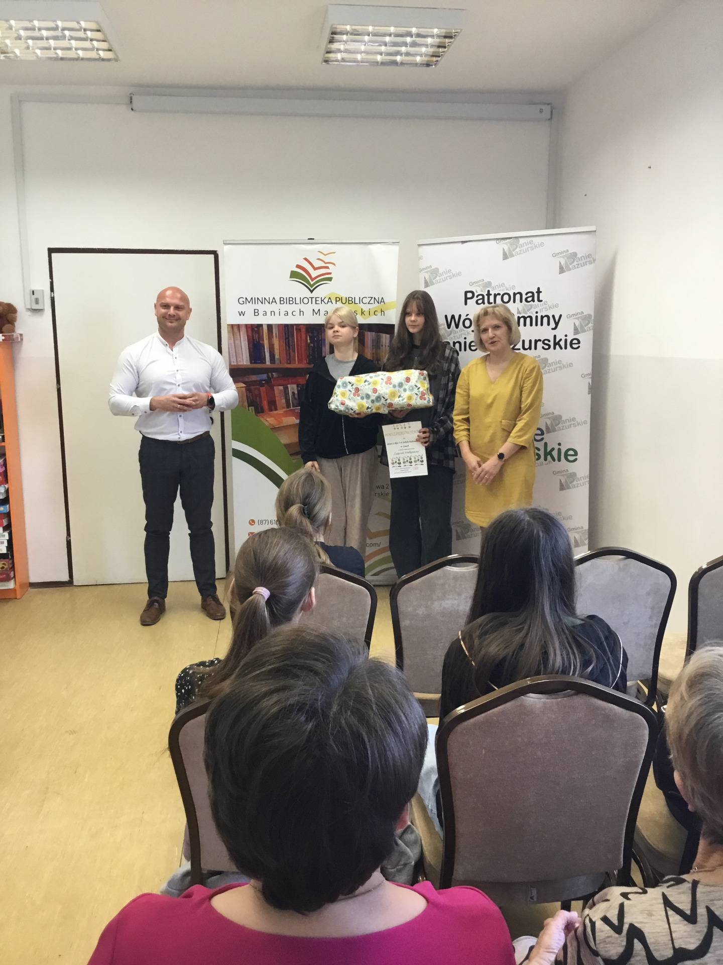 Podsumowanie i rozdanie nagród oraz dyplomów w konkursie plastycznym "Zajączek Wielkanocny" pod Patronatem Wójta Gminy Banie Mazurskie.