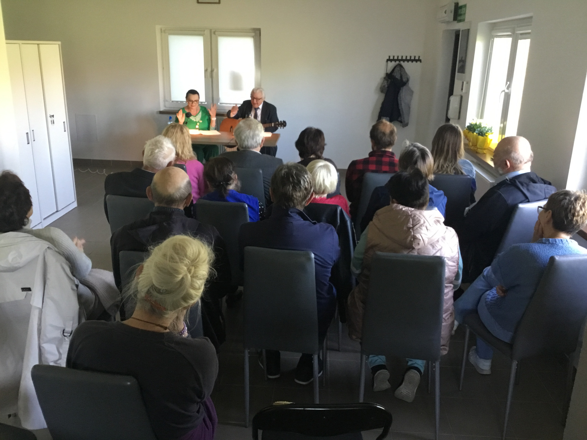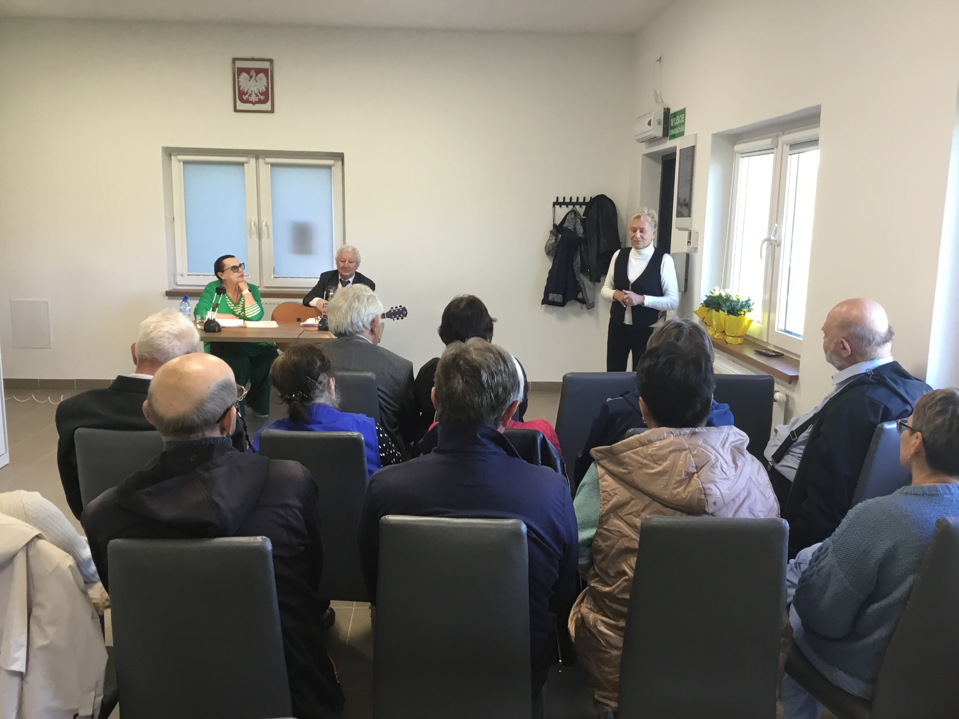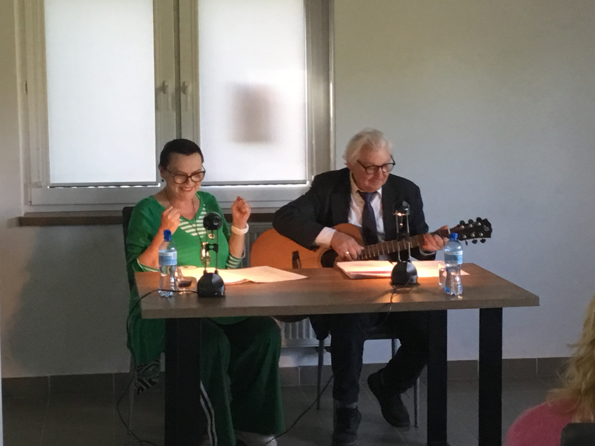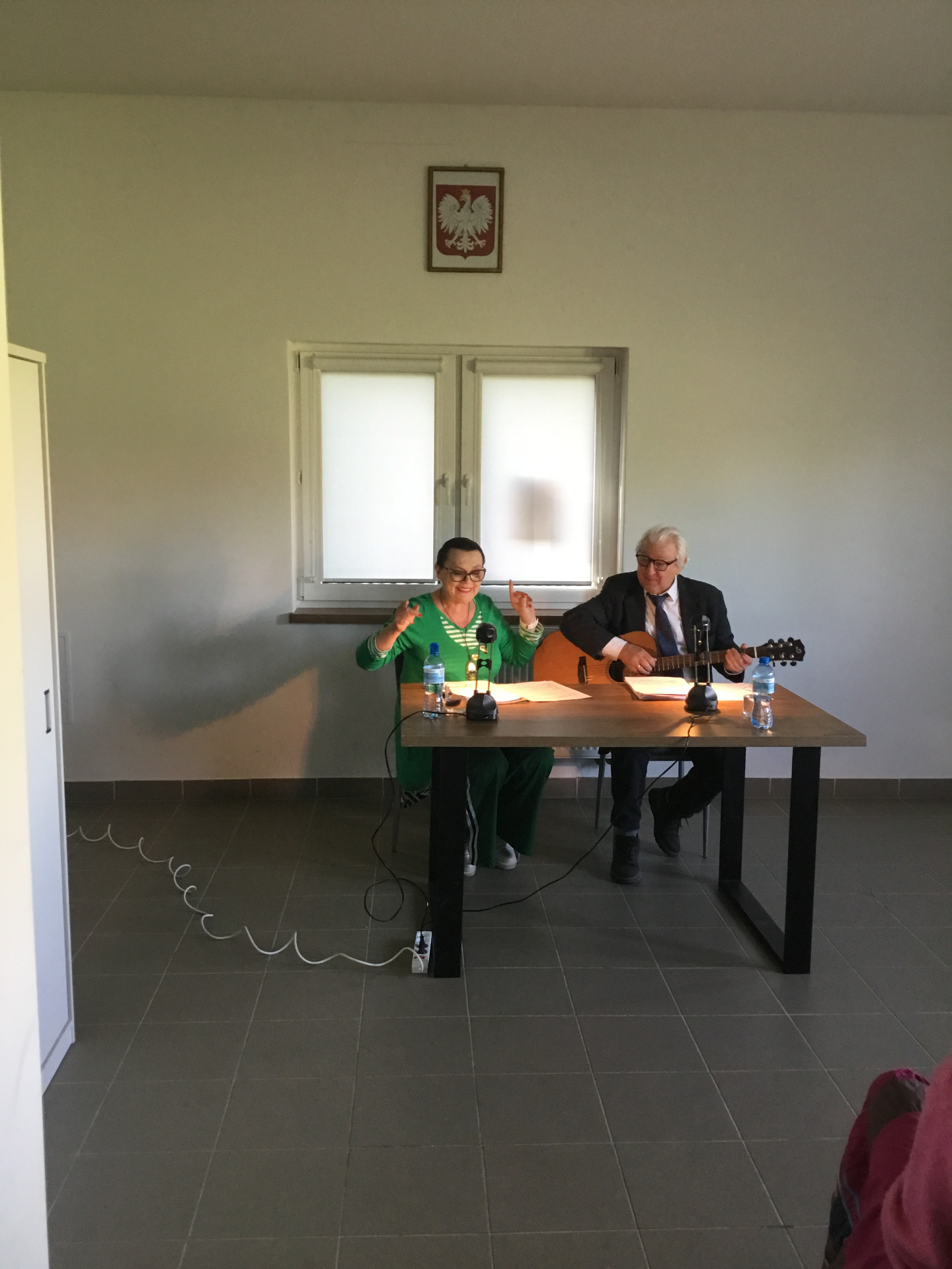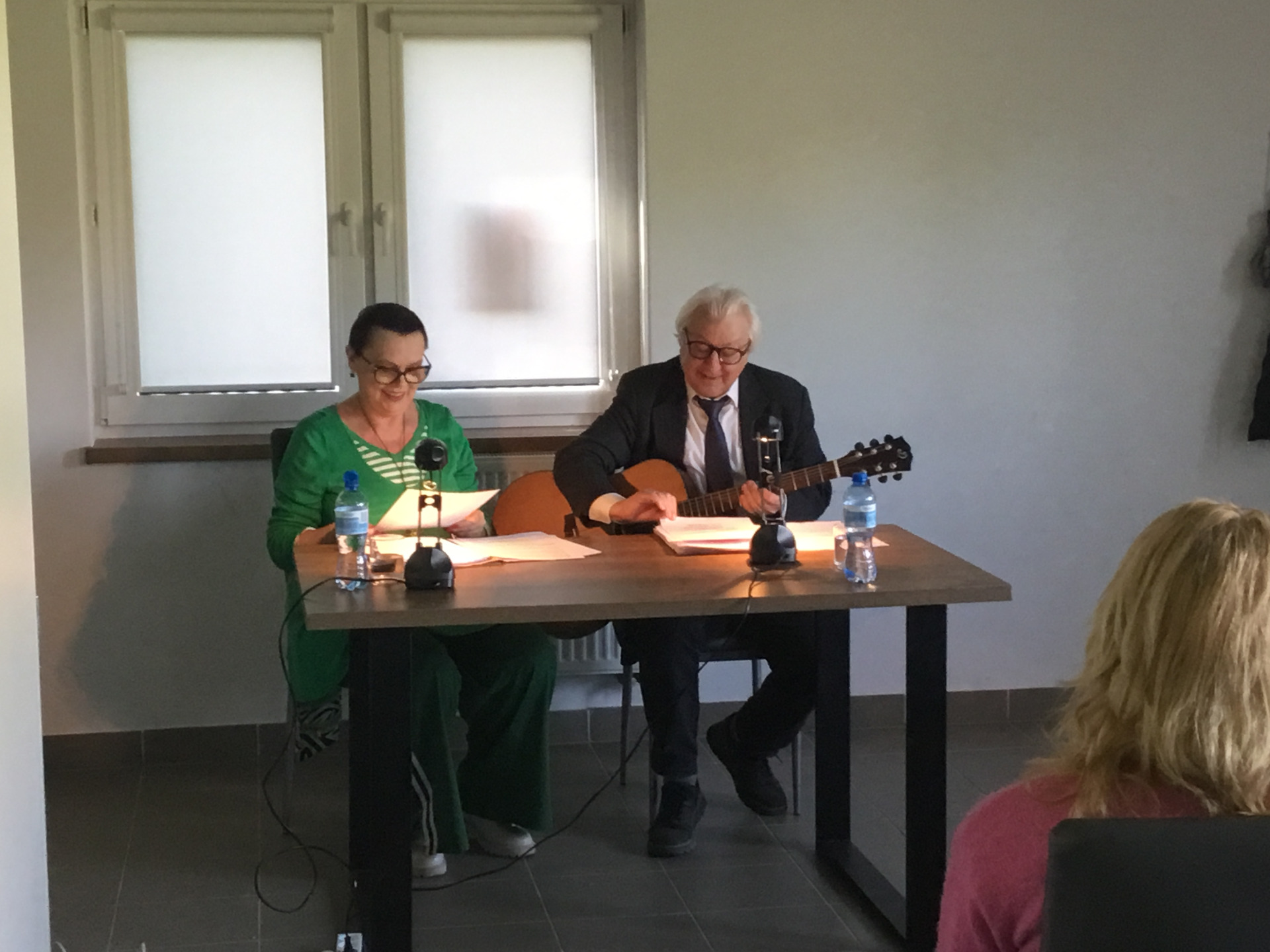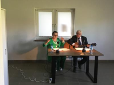 W poniedziałek 28 kwietnia 2025 roku nasza biblioteka miała przyjemność zaprosić mieszkańców Żabina i okolic na spotkanie z cyklu „Teatr przy stoliku”. W świetlicy wiejskiej aktorzy z teatru im. St. Jaracza w Olsztynie - Wiesława Szymańska i Marian Czarkowski czytali i śpiewali sztukę „Na całych połaciach - my”. Wzruszające dramatyczno-liryczno-komediowe wyznania miłosne krążące między dwojgiem geniuszy słowa.