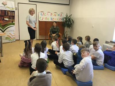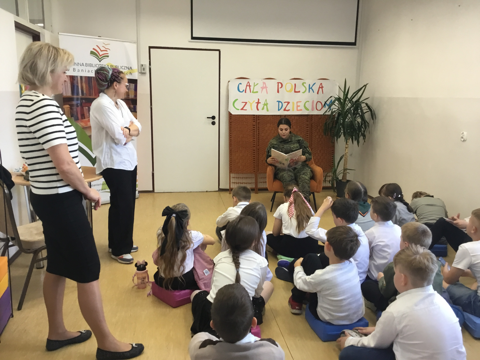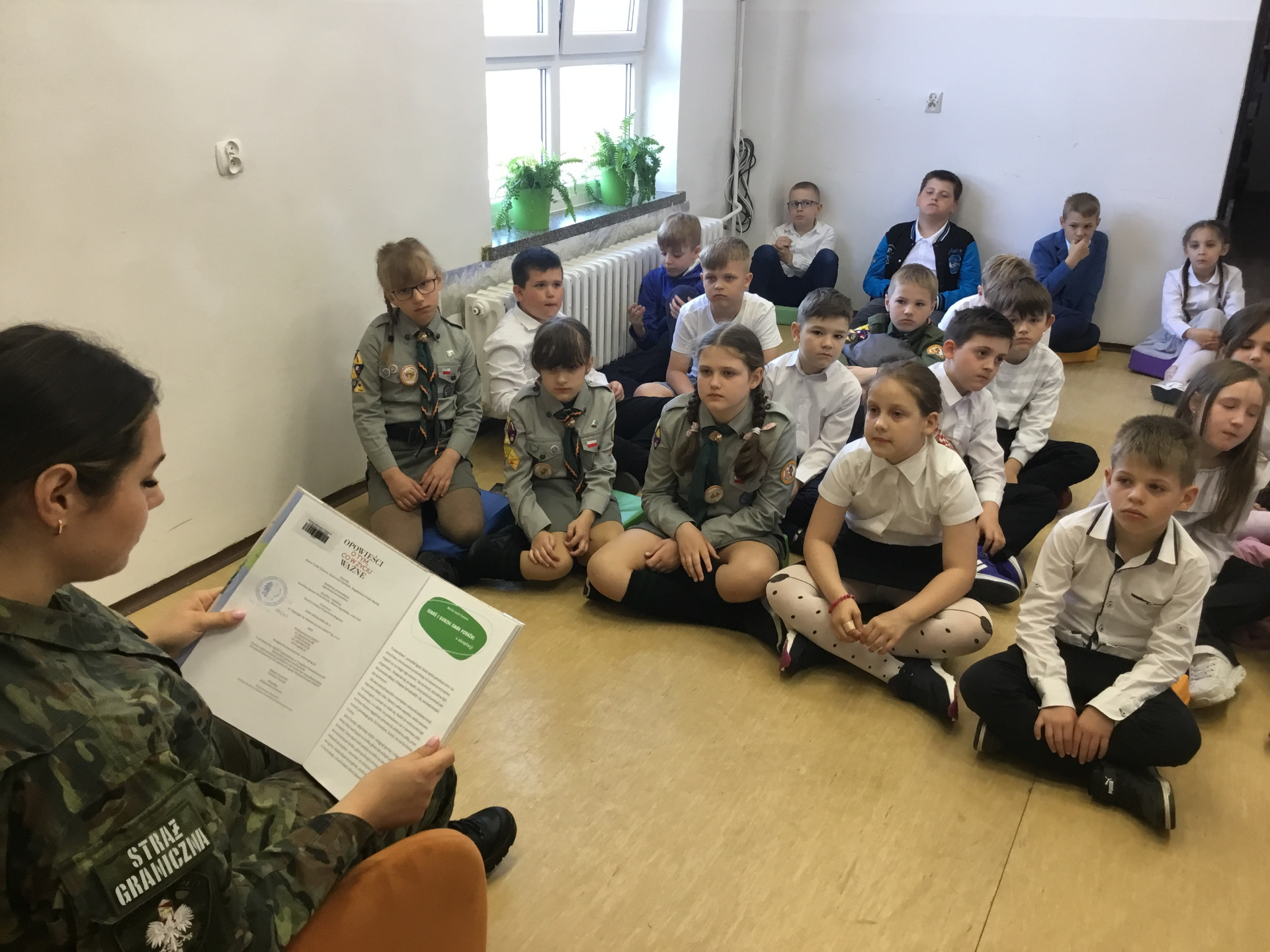 W ramach ogólnopolskiej akcji Cała Polska czyta dzieciom do głośnego czytania dla dzieci zaprosiliśmy mł. chor. SG Katarzynę z Placówki Straży Granicznej w Baniach Mazurskich.