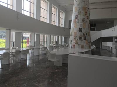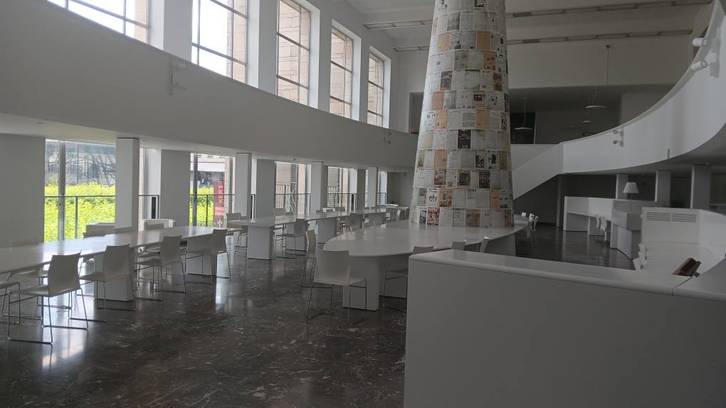 W środę, 7 maja 2025 r. pani dyrektor zwiedziła czytelnię i przemierzyła wiele korytarzy z pracownikami czytelni, które prowadzą do zbiorów znajdujących się na 6 piętrach budynku. Biblioteka gromadzi w swych zbiorach: