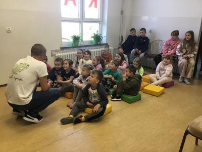 Dziękujemy Panu Pawłowi za inspirujące spotkanie, poprowadzone z niesamowitą energia i radością i za to, że pokazał najmłodszym, jak fascynujący może być świat poezji. Mamy nadzieję, że to nie ostatnia taka wizyta!