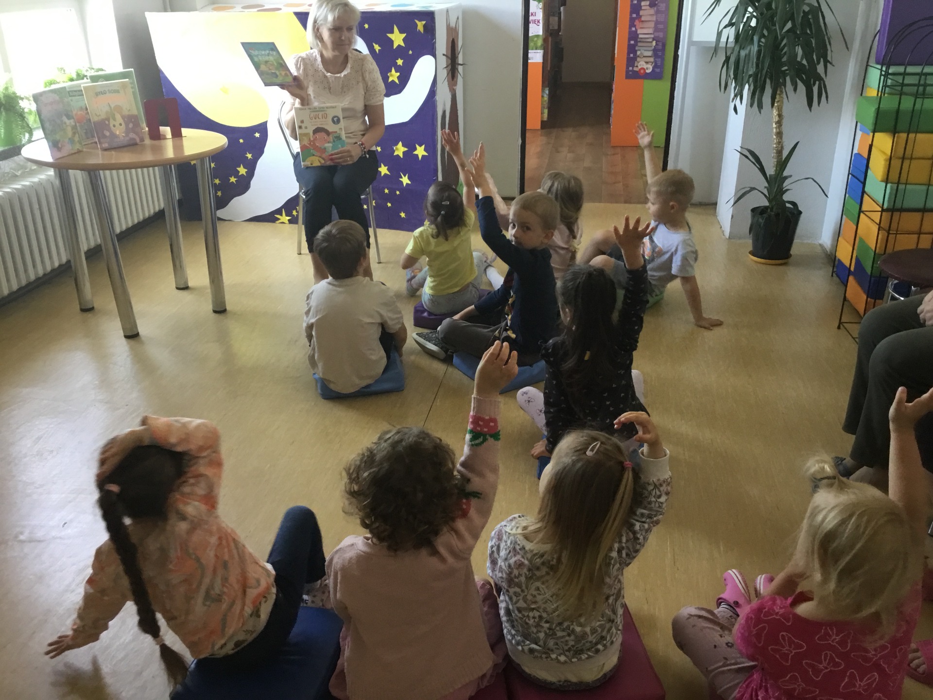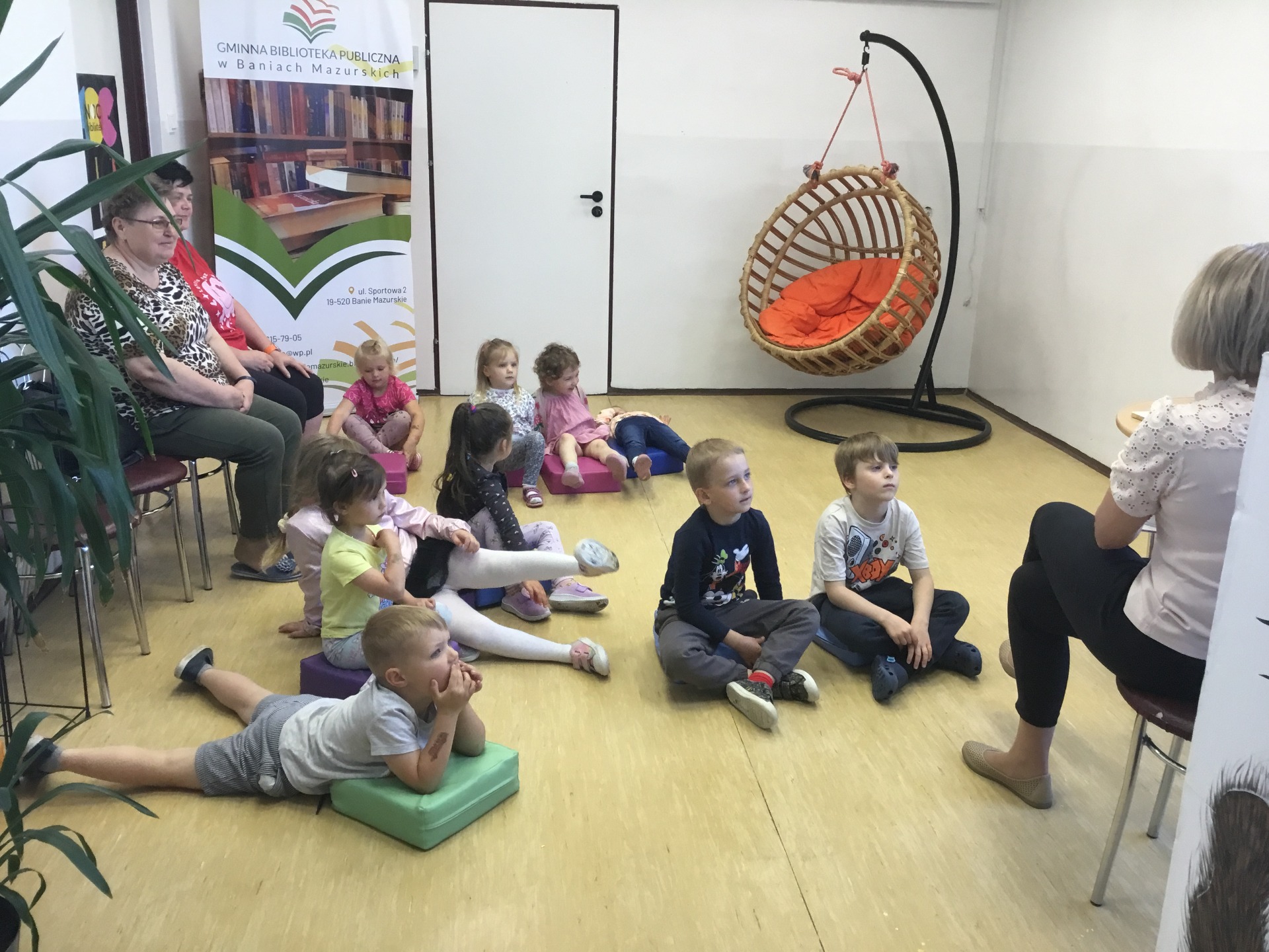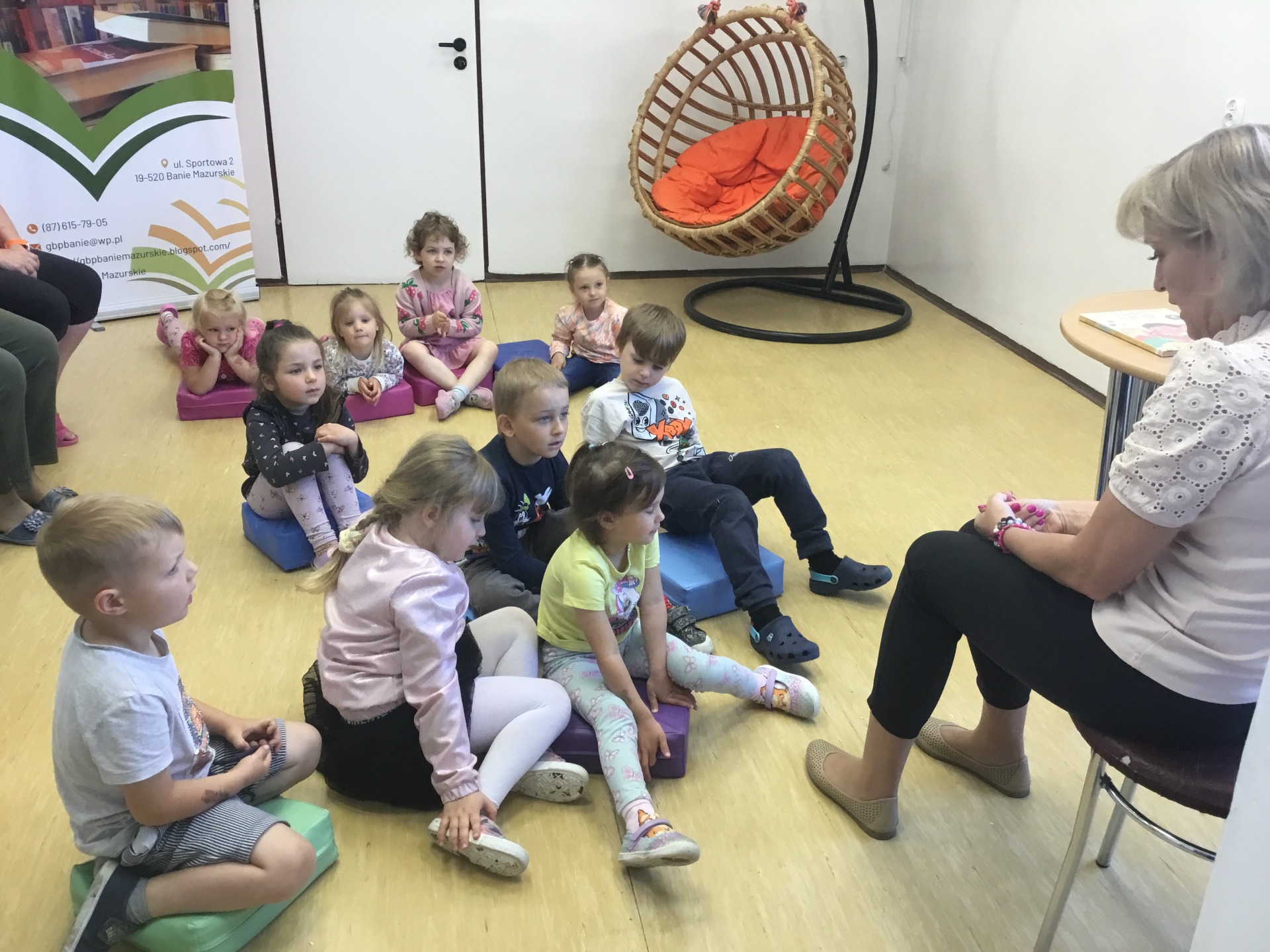 2 czerwca 2025 r. w ramach obchodów Ogólnopolskiego Tygodnia Czytania Dzieciom, w Gminnej Bibliotece Publicznej bibliotekarki czytają dzieciom z Publicznego Przedszkola Samorządowego w Baniach Mazurskich.
