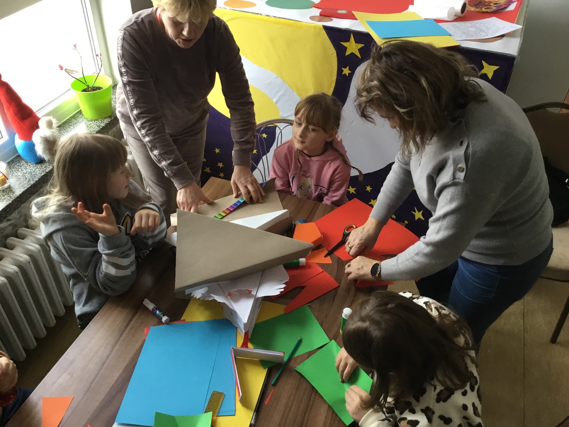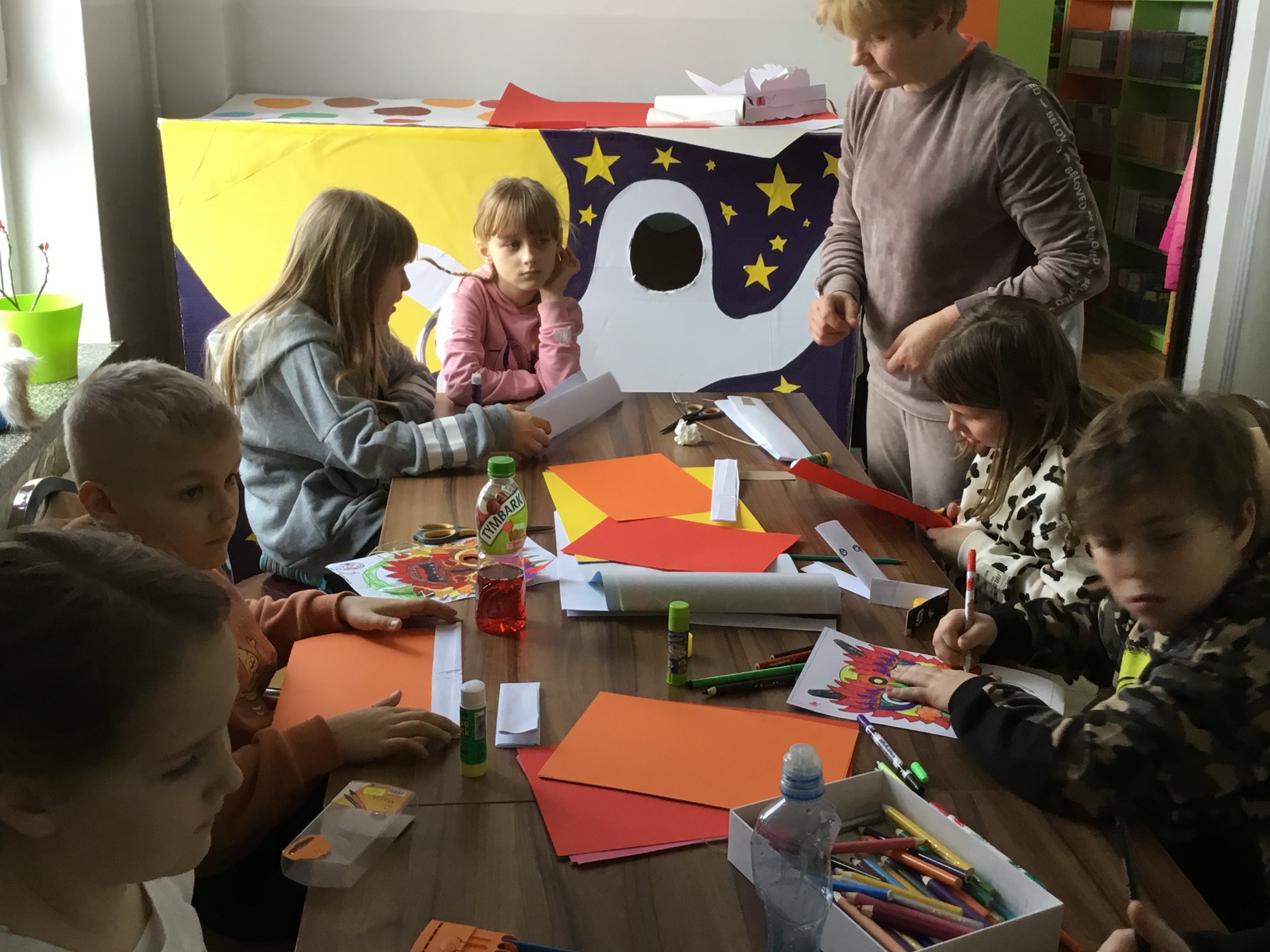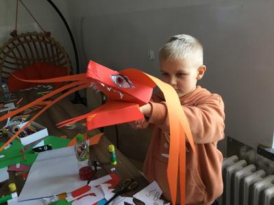 Następnie dzieci zaczęły wspólnie tworzyć smoka z papieru