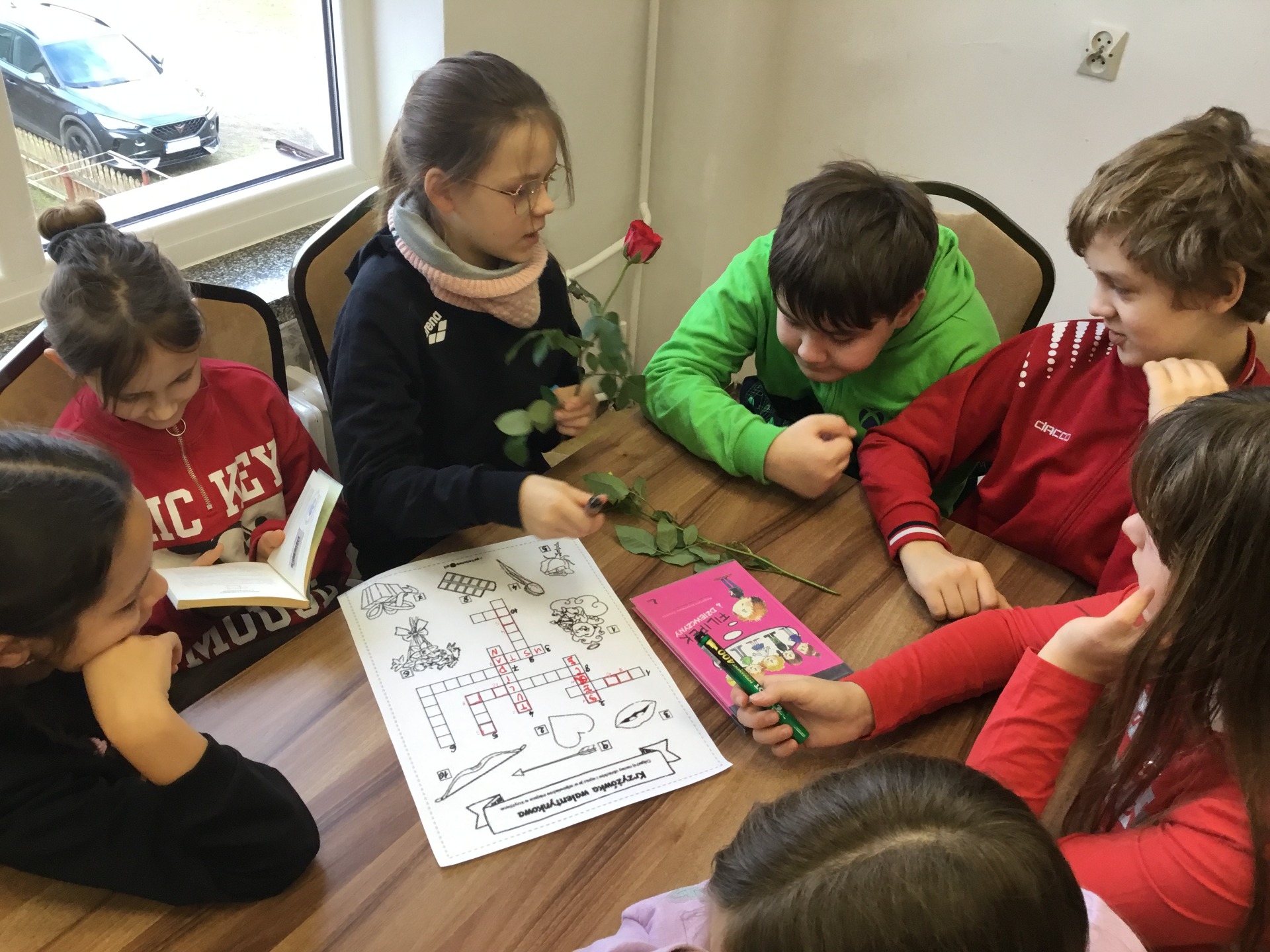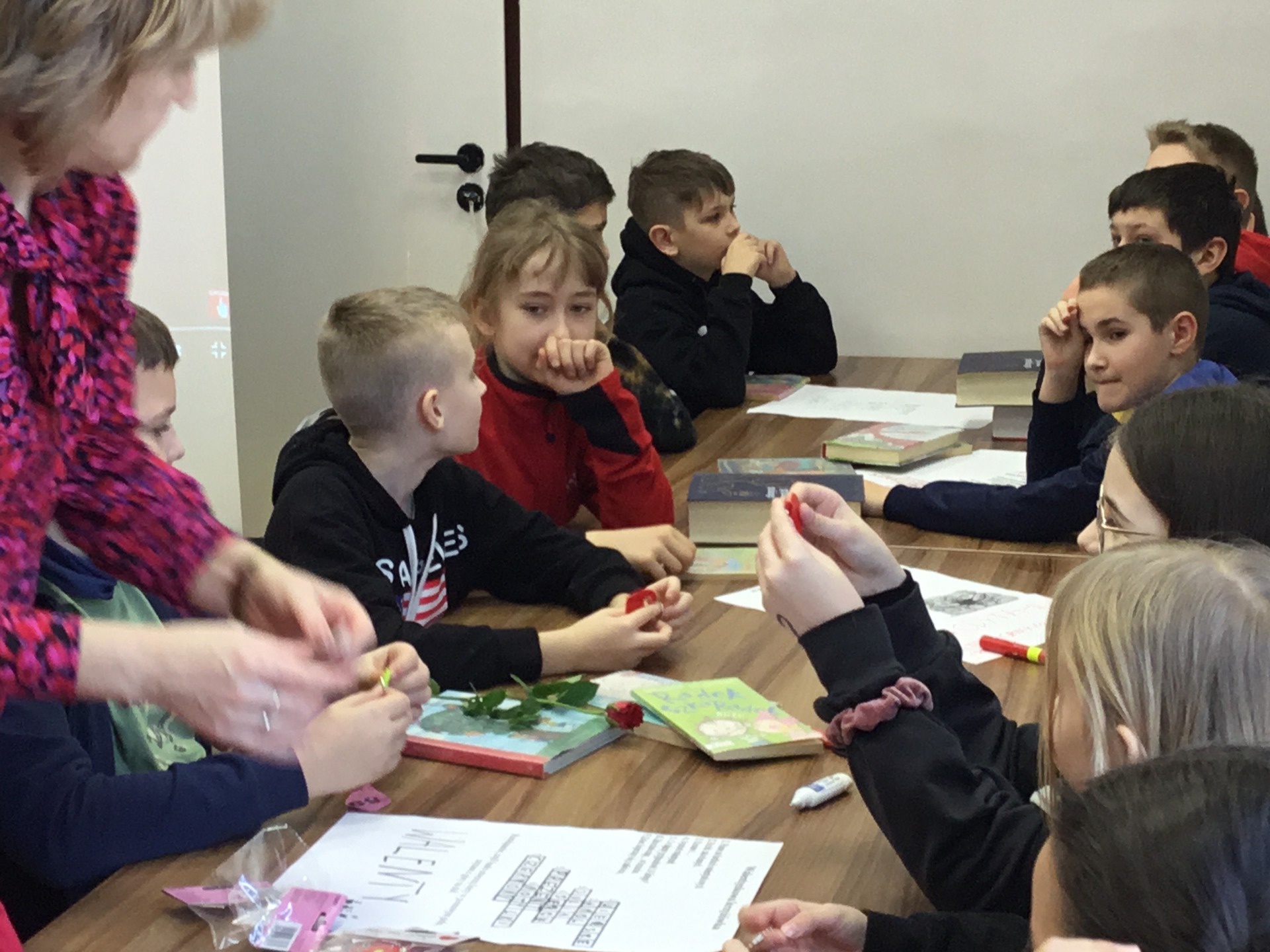 Dziś 14 lutego 2024 roku zaprosiliśmy do Gminnej Biblioteki Publicznej w Baniach Mazurskich dzieci z klasy IV szkoły Podstawowej w Baniach Mazurskich. W walentynkowej atmosferze spędziliśmy wspólnie czas. Poznaliśmy legendę o św. Walentym, wspólnie rozwiązywaliśmy krzyżówki o tej tematyce. Znaczenie haseł powstałych w krzyżówkach wyjaśniliśmy posługując się słownikami języka polskiego, wyrazów obcych, bliskoznacznych.