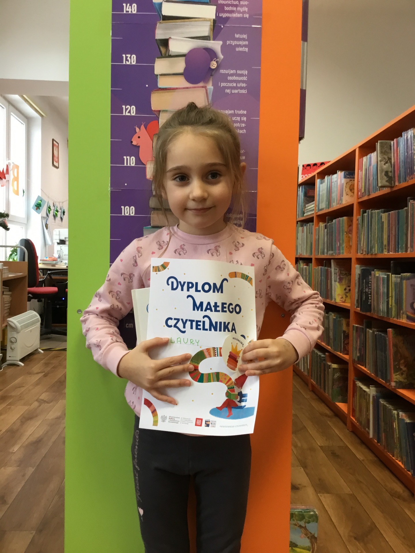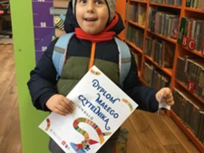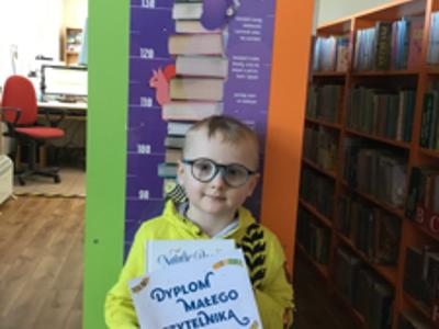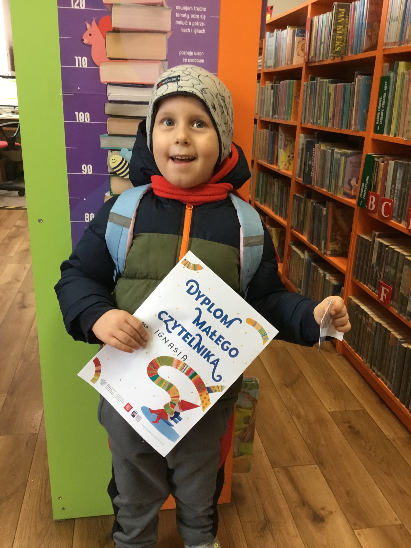 Gratulujemy naszym aktywnym Małym Czytelnikom. Kampania Mała książka – wielki człowiek jest realizowana w bibliotece. Każde dziecko w wieku przedszkolnym 3-6 lat otrzymuje nieodpłatnie Wyprawkę Czytelniczą oraz Kartę Małego Czytelnika. Za każdą wizytę w bibliotece, zakończoną wypożyczeniem minimum jednej książki z księgozbioru dziecięcego, Mały Czytelnik otrzyma naklejkę, a po zebraniu dziesięciu zostanie uhonorowany imiennym dyplomem.
