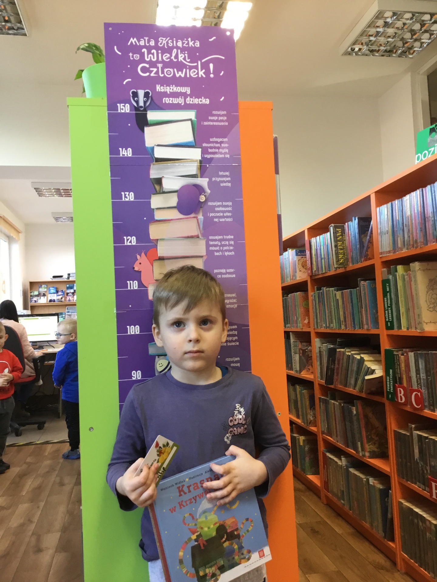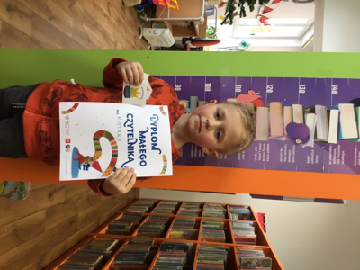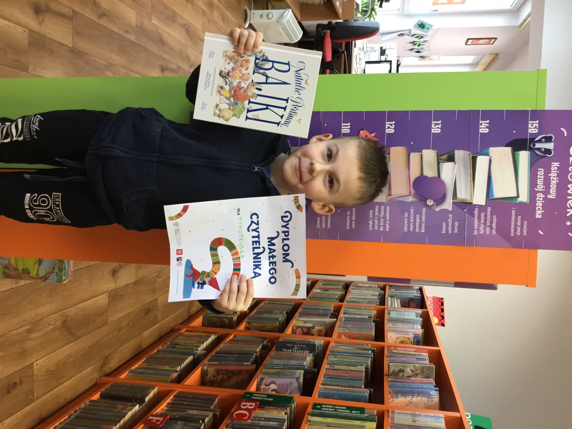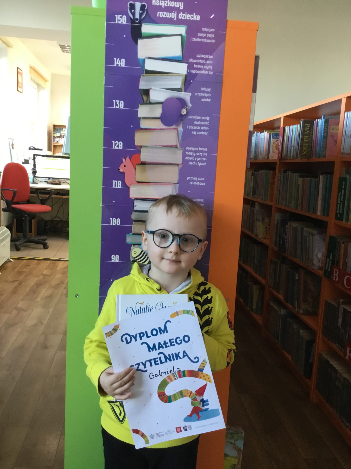 Gratulujemy naszym aktywnym Małym Czytelnikom. Kampania Mała książka – wielki człowiek jest realizowana w bibliotece. Każde dziecko w wieku przedszkolnym 3-6 lat otrzymuje nieodpłatnie Wyprawkę Czytelniczą oraz Kartę Małego Czytelnika. Za każdą wizytę w bibliotece, zakończoną wypożyczeniem minimum jednej książki z księgozbioru dziecięcego, Mały Czytelnik otrzyma naklejkę, a po zebraniu dziesięciu zostanie uhonorowany imiennym dyplomem.