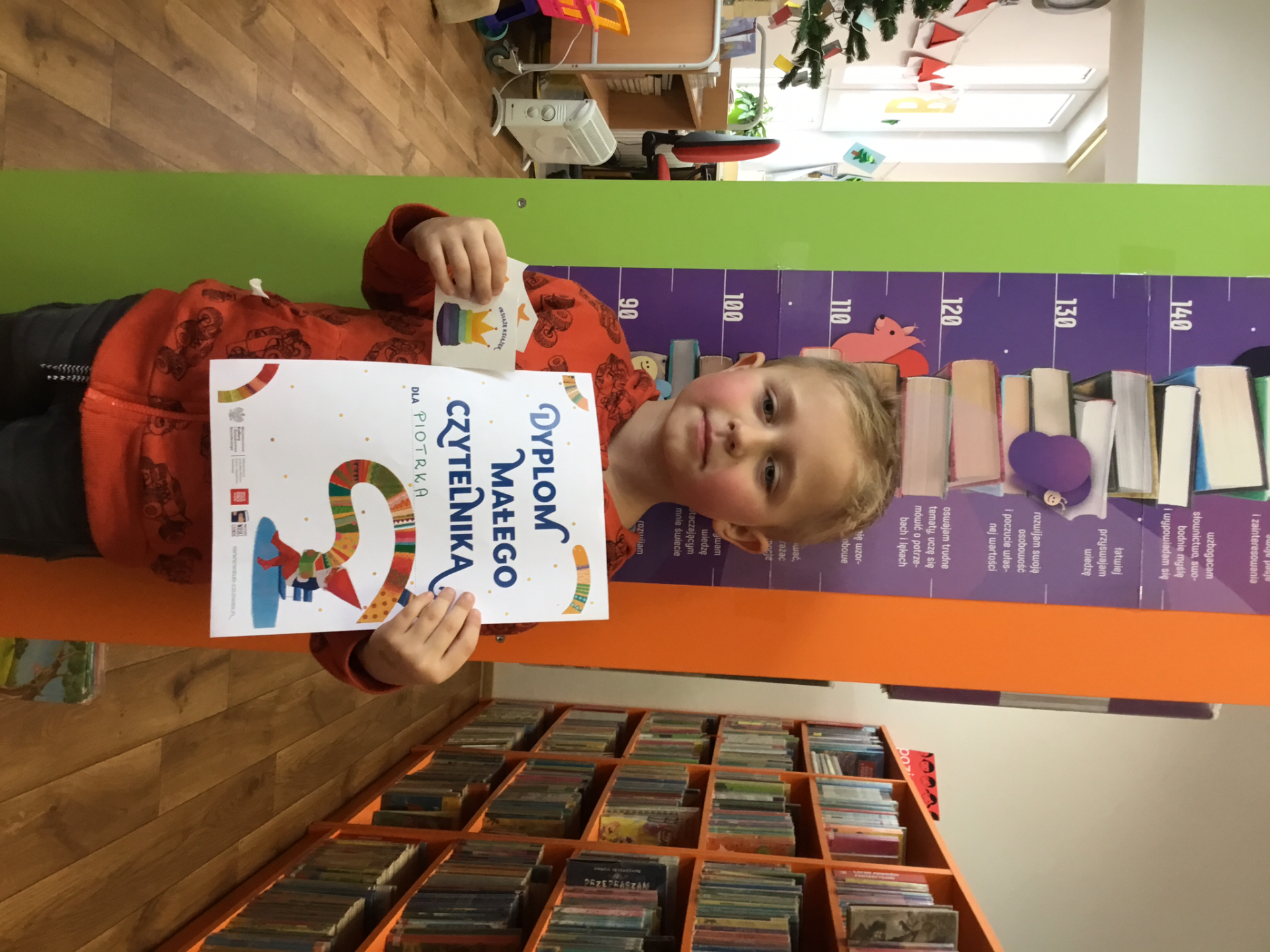 Gratulujemy naszym aktywnym Małym Czytelnikom. Kampania Mała książka – wielki człowiek jest realizowana w bibliotece. W miesiącach styczeń - luty wręczyliśmy kolejne wyprawki i dyplomy naszym najmłodszym czytelnikom