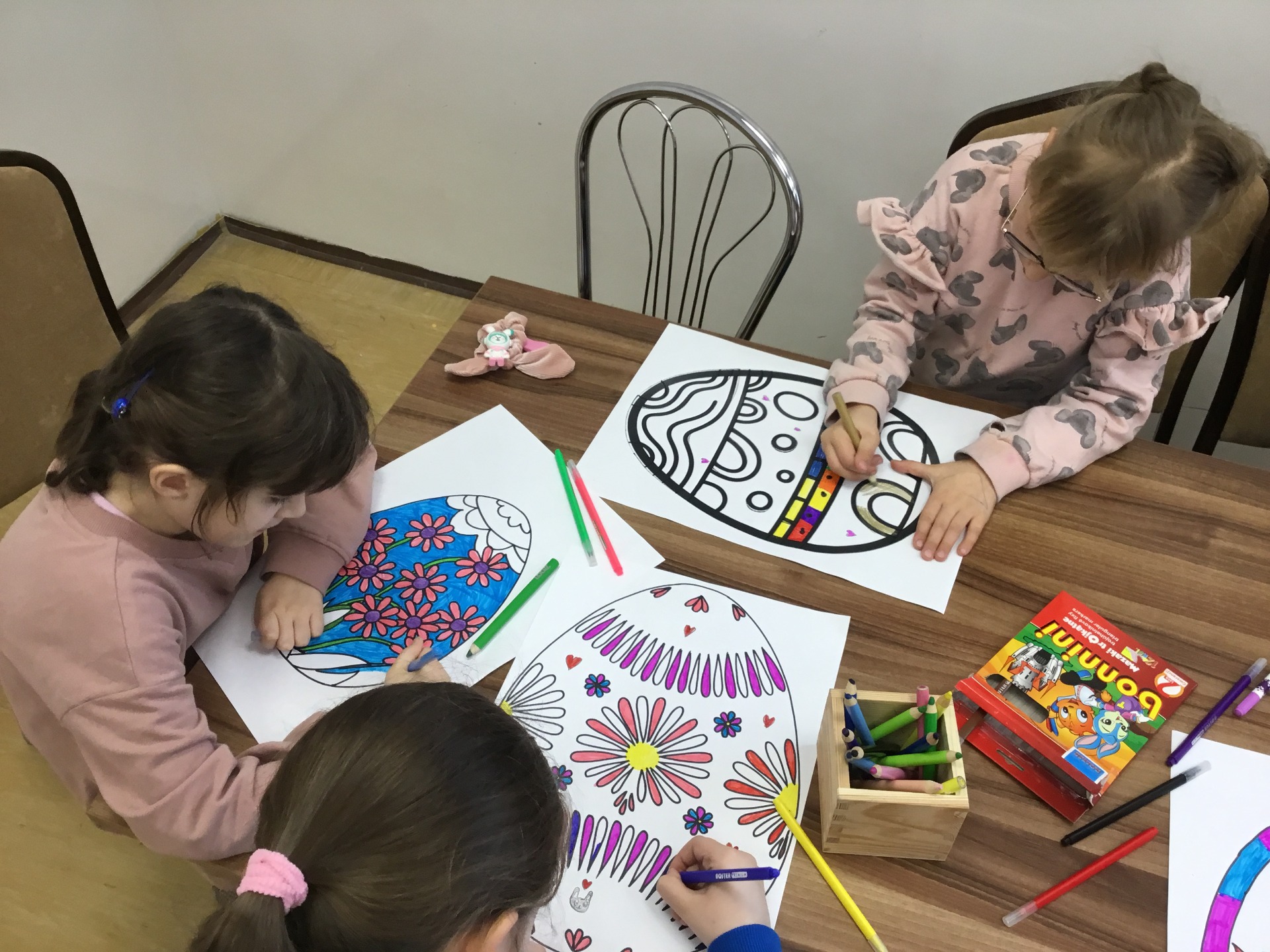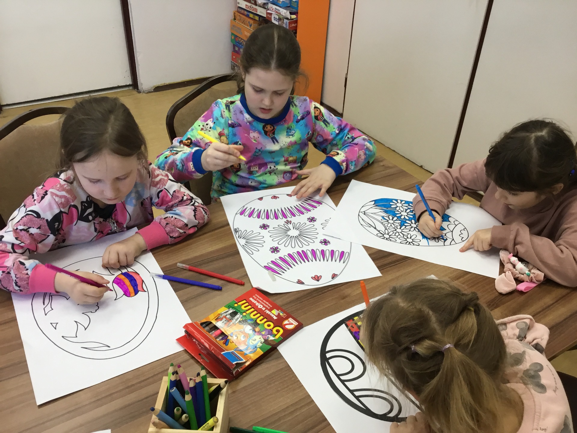 15 marca 2024 r. zaprosiliśmy dzieci z świetlicy szkolnej odwiedzające naszą bibliotekę do wykonania pięknych papierowych witraży z papieru. Każde dziecko otrzymało szablon do kolorowania o tematyce nawiązującej do świąt wielkanocnych. Po zalaminowaniu i wycięciu pracy plastycznej każdy witraż znalazł miejsce w oknie naszej biblioteki.