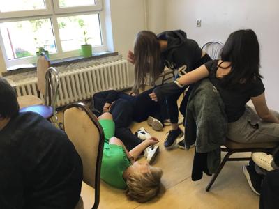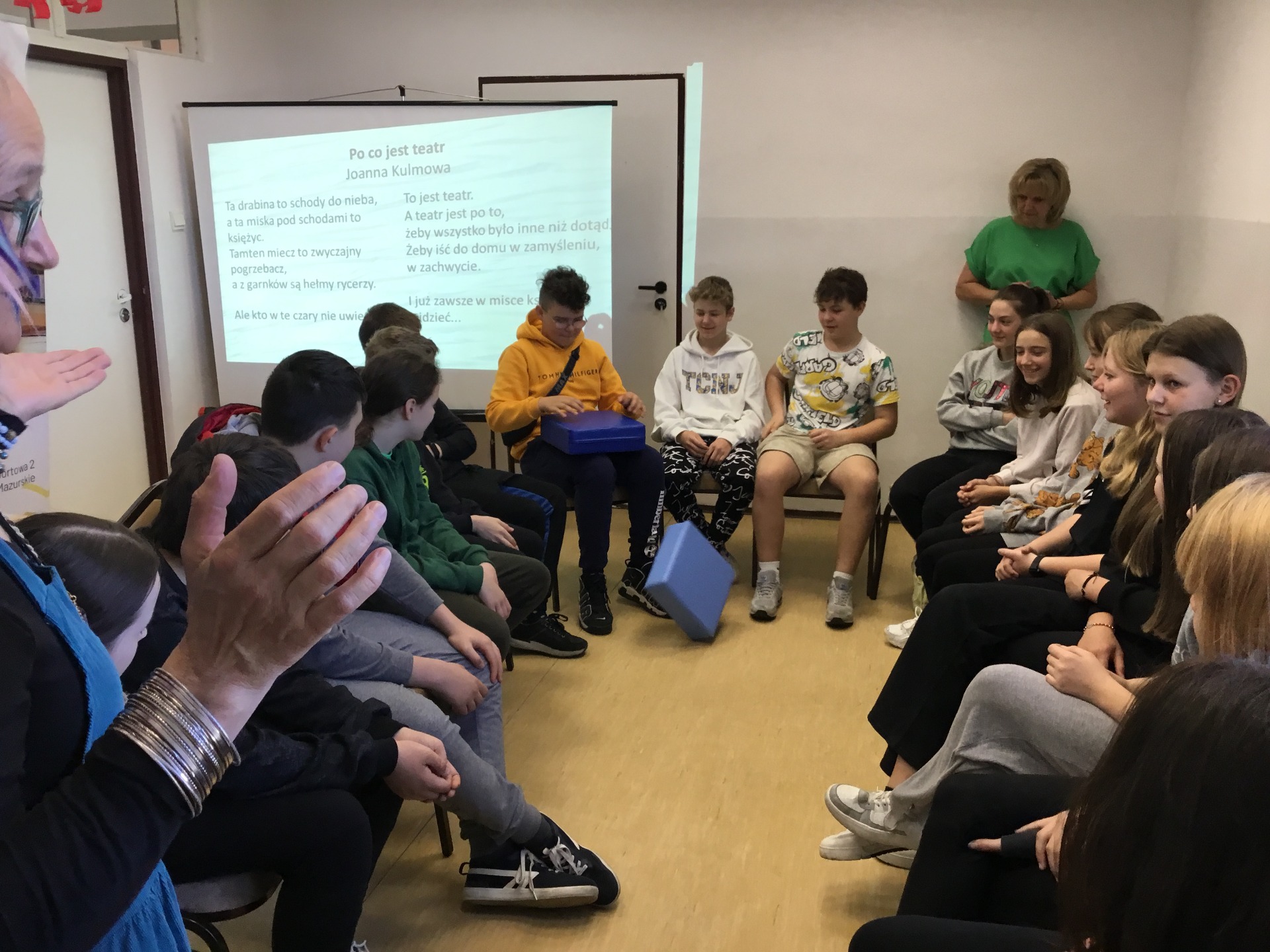 Warsztaty teatralne z Małgorzatą Jędrzejewską, instruktorką teatralna i kulturalną w Gminnej Bibliotece Publicznej w Baniach Mazurskich