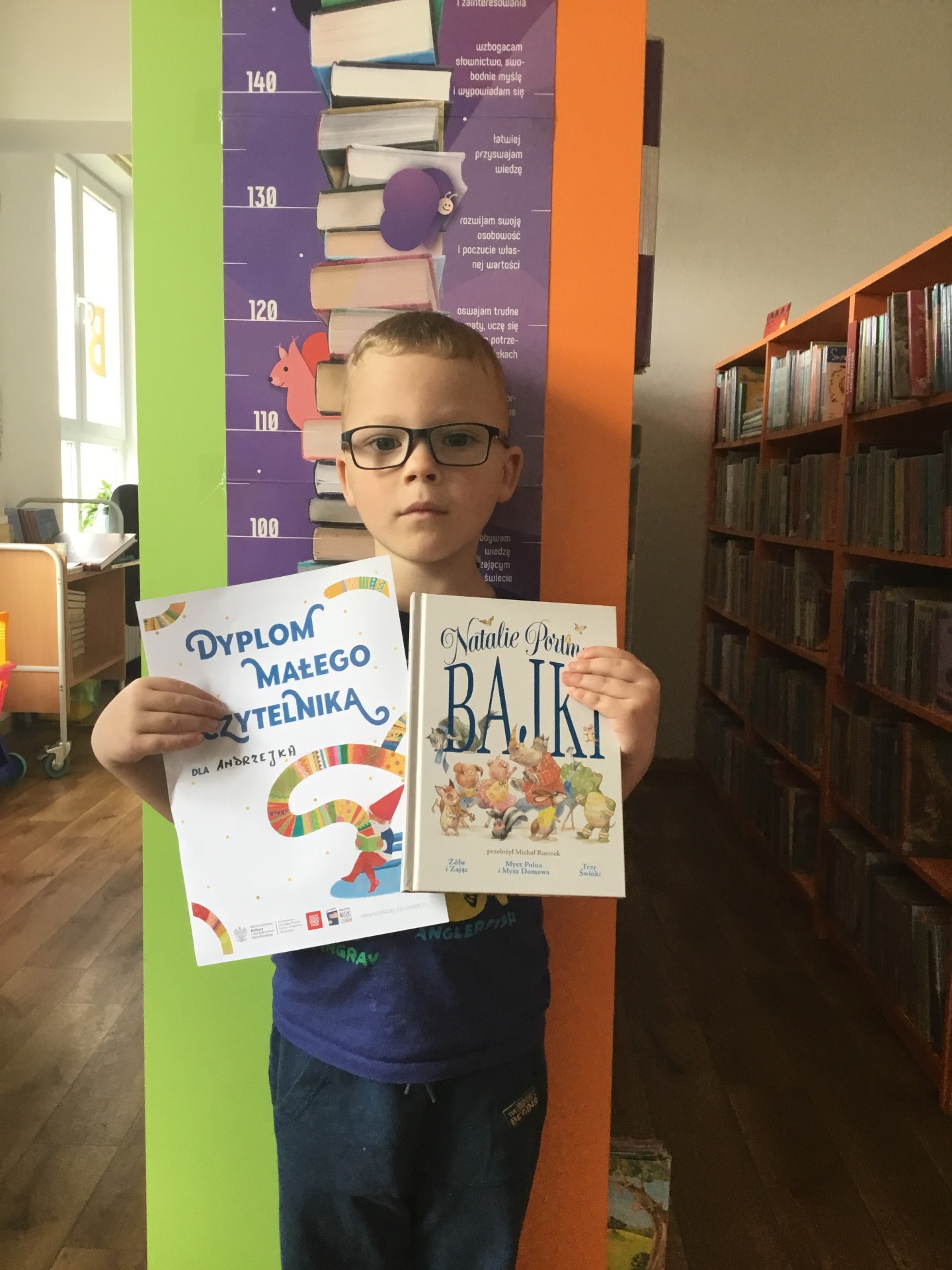 Akcja "Mała książka - wielki człowiek" W ramach akcji "Mała książka - wielki człowiek" po raz kolejny wręczyliśmy dyplom oraz wyprawkę dla naszych wspaniałych małych czytelników. Gratulujemy Anastazji i Andrzejkowi!!! Galeria zdjęć Drukuj Kopiuj link Facebook.com X.com Data publikacji: 31.05.2024 godz. 16:25 Wyświetlono: 27 Kategoria: Aktualności Tematyka: 2024 Tematyka: Maj Tematyka: Mała książka - Wielki człowiek Zobacz również Zobacz więcej 31.05.2024 Aktualności 2024 Maj Warsztaty teatralne z Małgorzatą Jędrzejewską, instruktorką... 8 maja 2024 r. w Gminnej Bibliotece Publicznej w Baniach Mazurskich odbyły się warsztaty teatralne skierowane do młodzieży. Na spotkanie zaprosiliśmy uczniów klasy 6 z Szkoły Podstawowej w... 31.05.2024 Aktualności 2024 Maj Spotkanie autorskie Z okazji Dnia Bibliotekarza i Bibliotek 8 maja w Gminnej... W środę, 8 maja o godz. 16:00 odbyło się w Gminnej Bibliotece Publicznej w Baniach Mazurskich spotkanie autorskie z Małgorzatą Jędrzejewską – twórczą duszą, poetką, pisarką, autorką kilu ciekawych. Pragniemy... 31.05.2024 Aktualności 2024 Maj Laurka dla mojej mamy Z okazji wyjątkowego święta jakim dla wszystkich dzieci jest Dzień Matki, 24 maja w naszej bibliotece odbyły się zajęcia, w których wzięli udział uczniowie korzystający ze świetlicy szkolnej w Baniach...