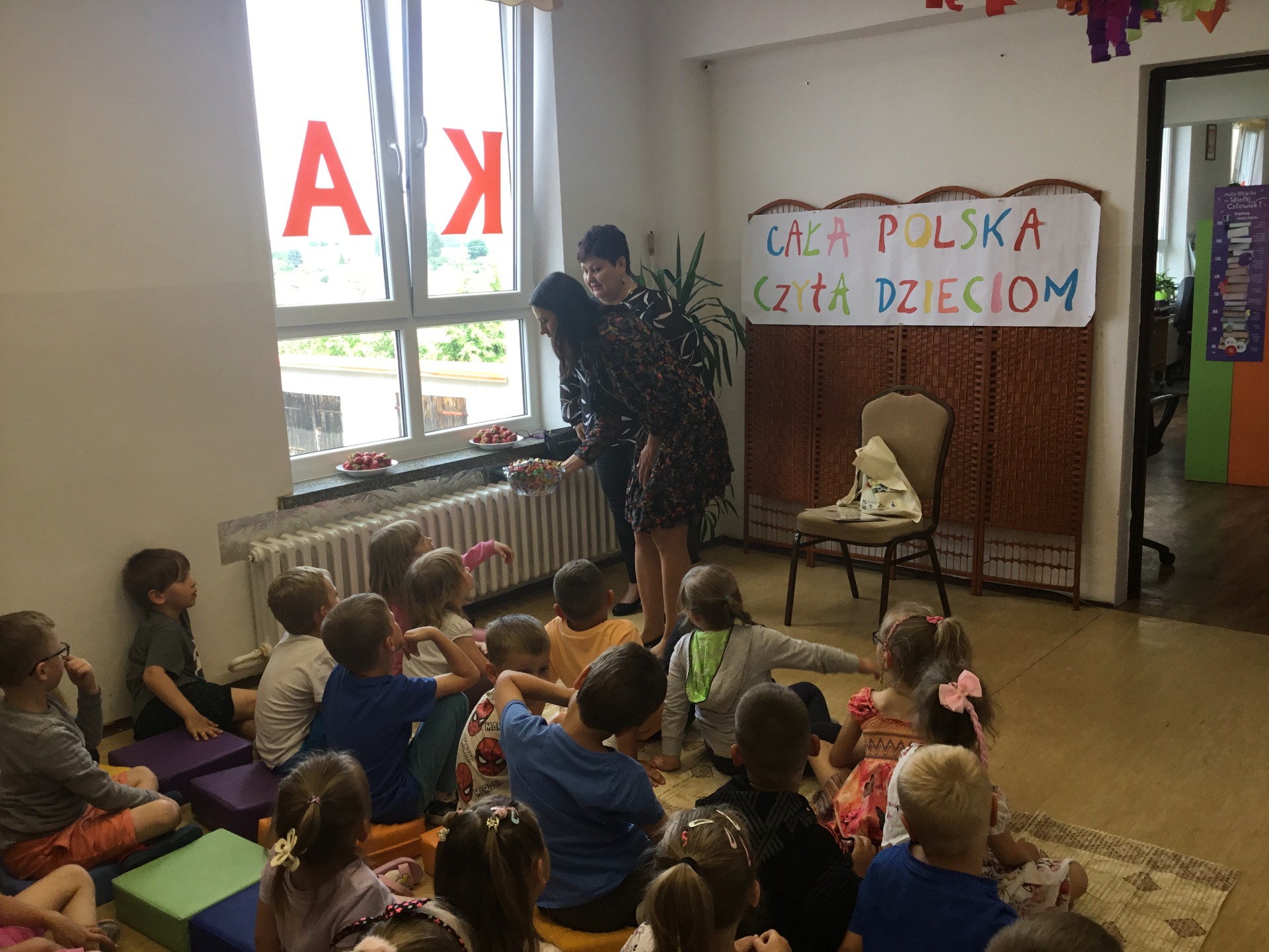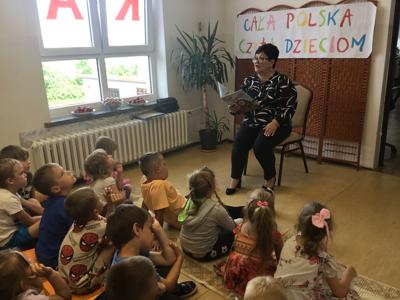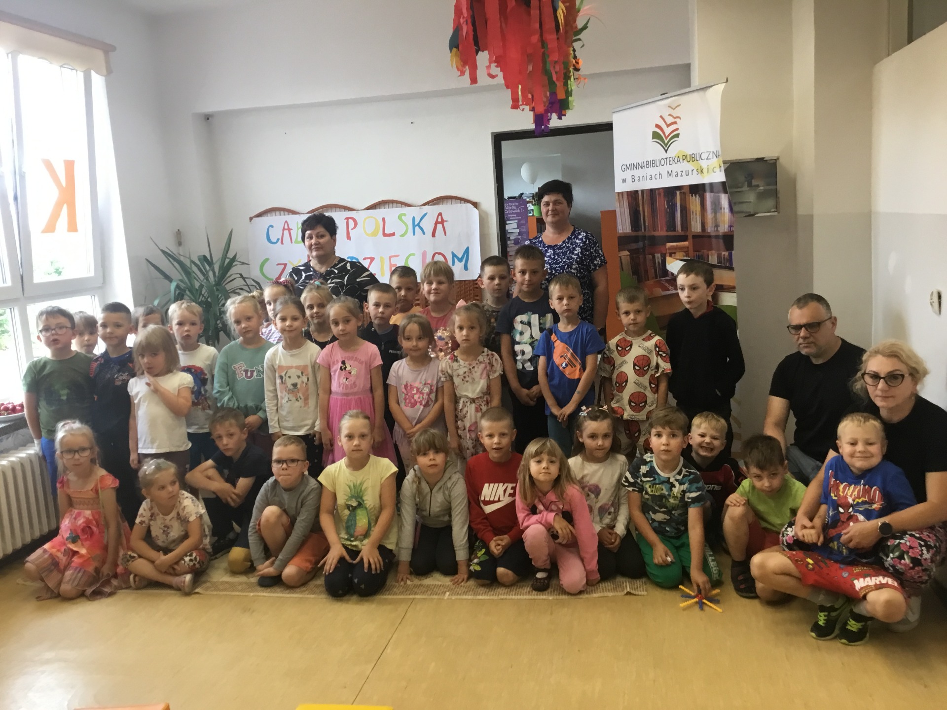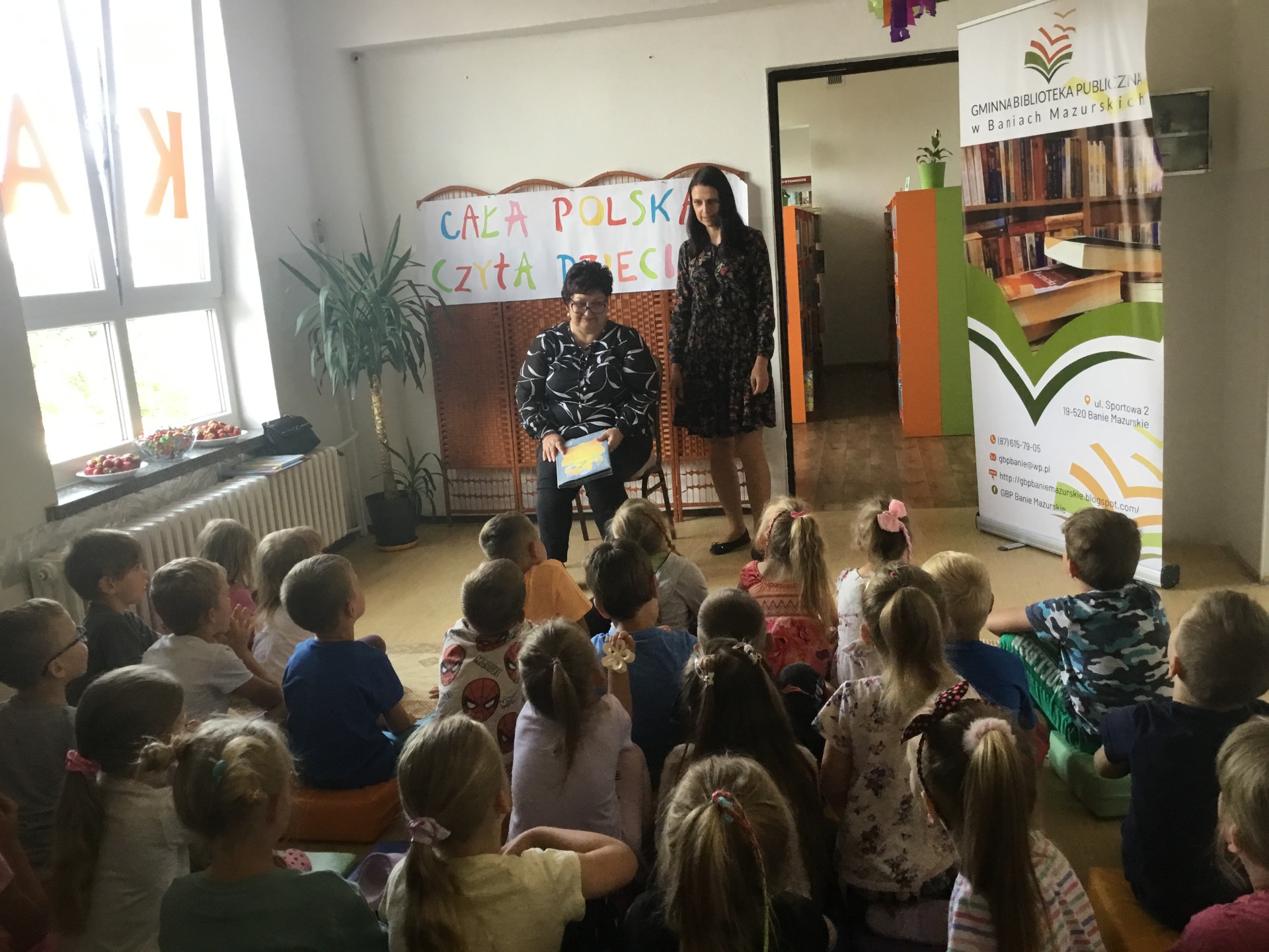 6 czerwca, z okazji XXIII Ogólnopolskiego Tygodnia Czytania Dzieciom, w Gminnej Bibliotece Publicznej w Baniach Mazurskich Pani Stefania Urbańska - Przewodnicząca Rady Gminy spotkała się z grupą 5 i 6-latków z tutejszego przedszkola, by wspólnie uczcić coroczne święto głośnego czytania.