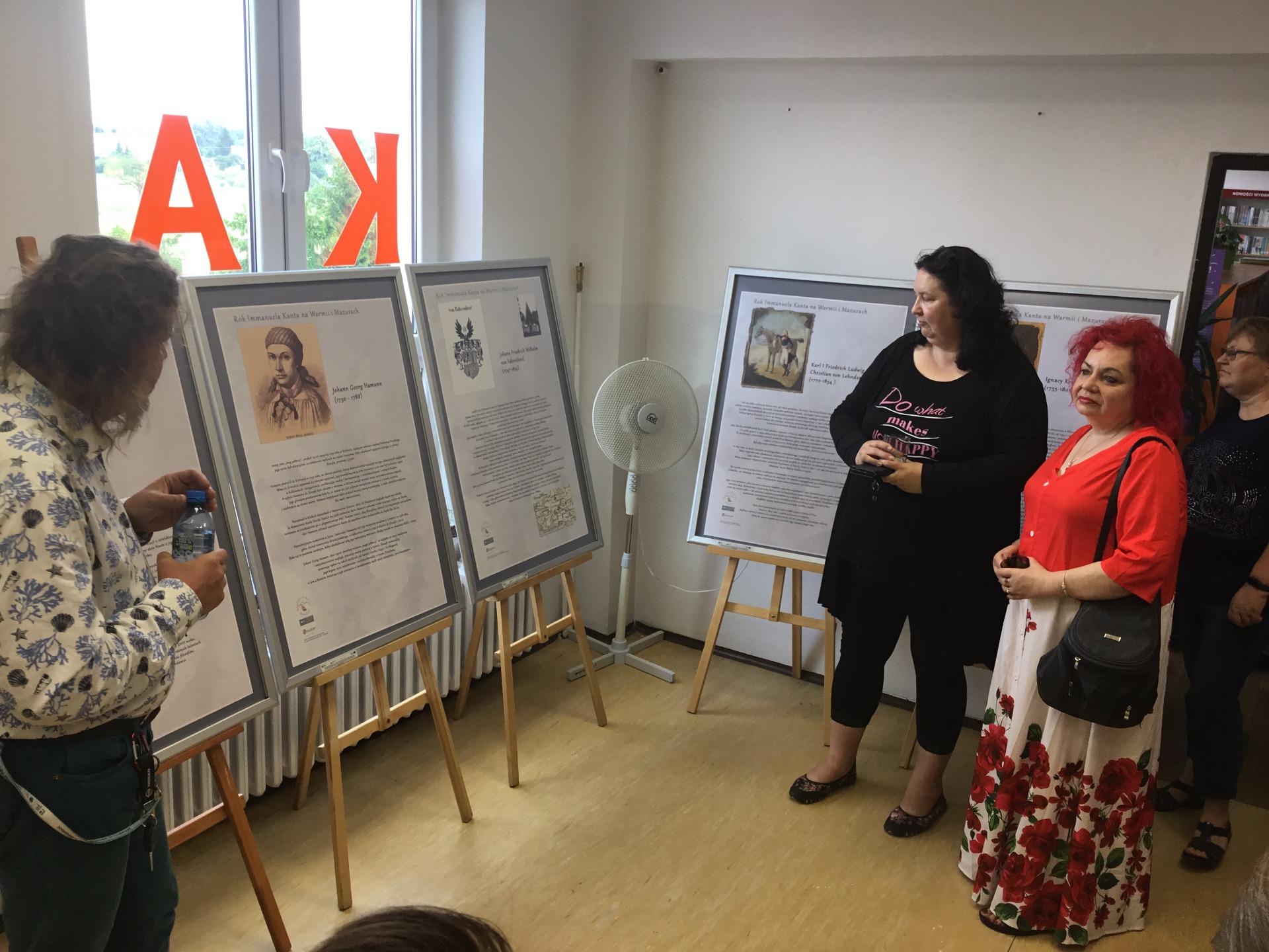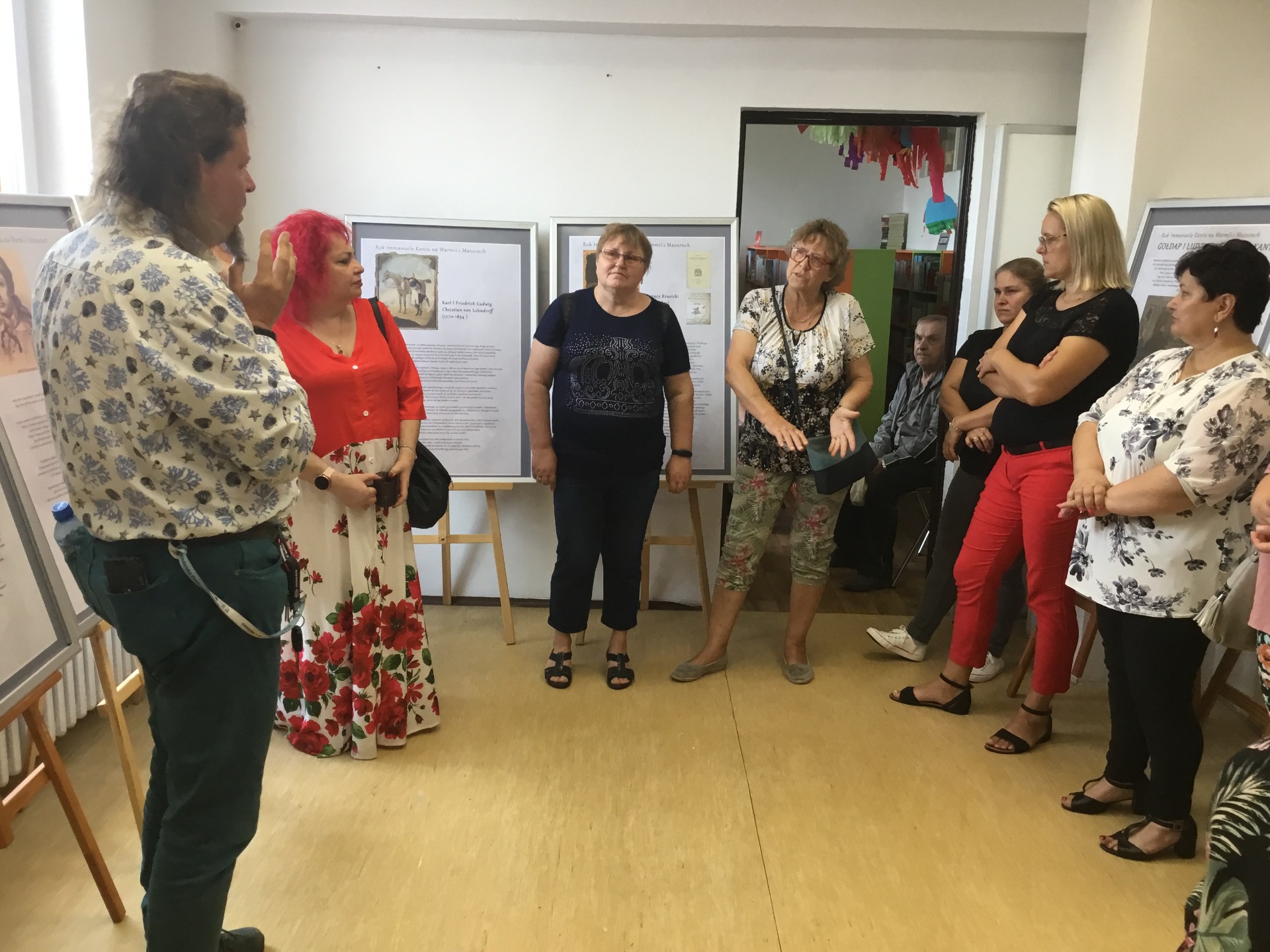 Dzisiejsze wydarzenie wernisaż wystawy „Gołdap i Ludzie w czasach Kanta” w Gminnej Bibliotece Publicznej w Baniach Mazurskich przyciągnął dużą liczbę odbiorców. Na spotkaniu obecni byli mieszkańcy, czytelnicy naszej biblioteki, panie z dyskusyjnego klubu książki, przedstawiciele gminy, seniorzy z Klubów Senior oraz dyrektorki szkół podstawowych z terenu gminy Banie Mazurskie. Otwarcie wystawy było okazją do spotkania się z lokalną społeczności, aby wspólnie poznawać historię regionu i jego związek z epoką Immanuela Kanta. Agnieszka Dziobkowska dyrektor Biblioteki Publicznej w Gołdapi wręczyła pamiątkowy numizmat oraz najnowsze wydanie „Traktatu o wiecznym pokoju” autorstwa Immanuela Kanta. Podczas wernisażu uczestnicy mieli możliwość wysłuchania kuratorskiego oprowadzania przygotowanego przez Janusza Jankowskiego, co pozwoliło lepiej zrozumieć kontekst historyczny prezentowanych treści. Wystawa „Gołdap i Ludzie w czasach Kanta” jest autorskim projektem Biblioteki Publicznej w Gołdapi, z okazji Roku Immanuela Kanta na Warmii i Mazurach.
