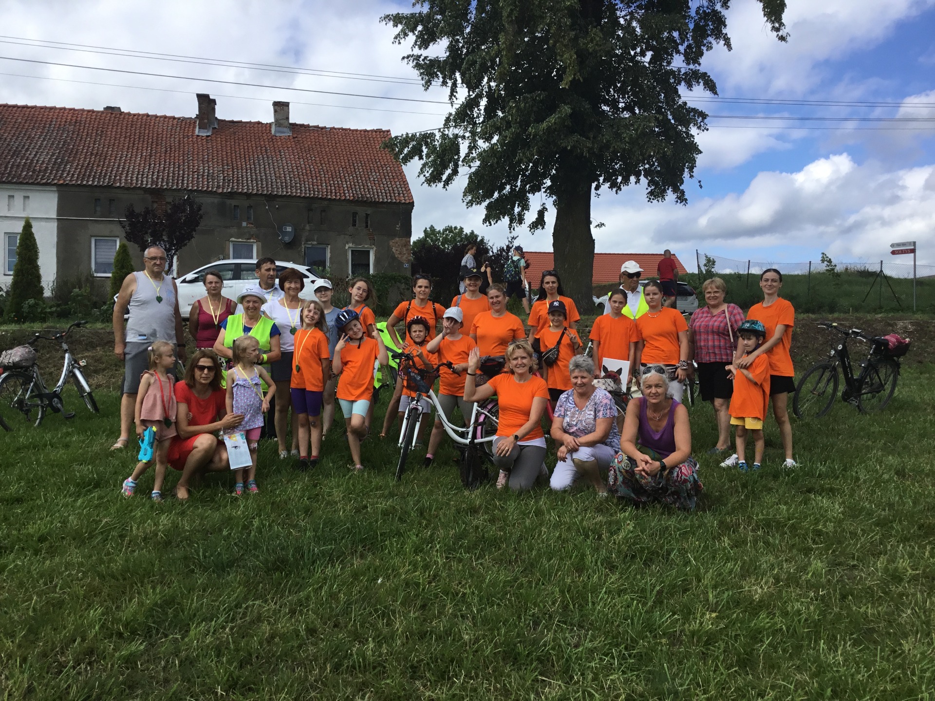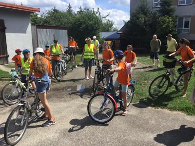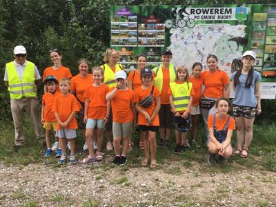 Za nami kolejna ,VII już edycja Rajdu rowerowego ODJAZDOWY BIBLIOTEKARZ organizowana przez bibliotekę. W słoneczną, lipcową sobotę już od godziny 11.00 uczestnicy, 18 osób gromadzili się w bibliotece. Przed wyjazdem Panie policjantki z Komendy Powiatowej Policji w Gołdapi rozmawiały z uczestnikami rajdu o bezpieczeństwie rowerzystów w ruchu drogowym, dziękujemy za otrzymane książeczki dla młodych rowerzystów. Przygotowani mniej lub bardziej pomarańczowi rowerzyści, po wpięciu "szprychówek" ruszyli do sąsiedniej gminy Budry. Celem była miejscowość Piłaki Małe, w której odbywał się festyn - Święto Lipowych Łąk. Na miejscu spotkaliśmy również swoich przyjaciół z zaprzyjaźnionej Gminnej Biblioteki Publicznej w Pozezdrzu na czele z kierownikiem Bronisławem Gbp w Pozezdrzu. Uczestnicy rajdu wzięli aktywny udział w warsztatach malarskich i biegu przełajowym. Skosztowali pysznego tortu upieczonego przez Panie z Koło Gospodyń Piłaki Małe, otrzymali piękne medale za ukończony bieg a od przedstawicieli gminy Budry książkę Wojciecha Marka Darskiego "Kraina Węgorapy. Wędrówki po gminie Budry". Około godziny 16:00 wyruszyli w drogę powrotną do Bań Mazurskich.