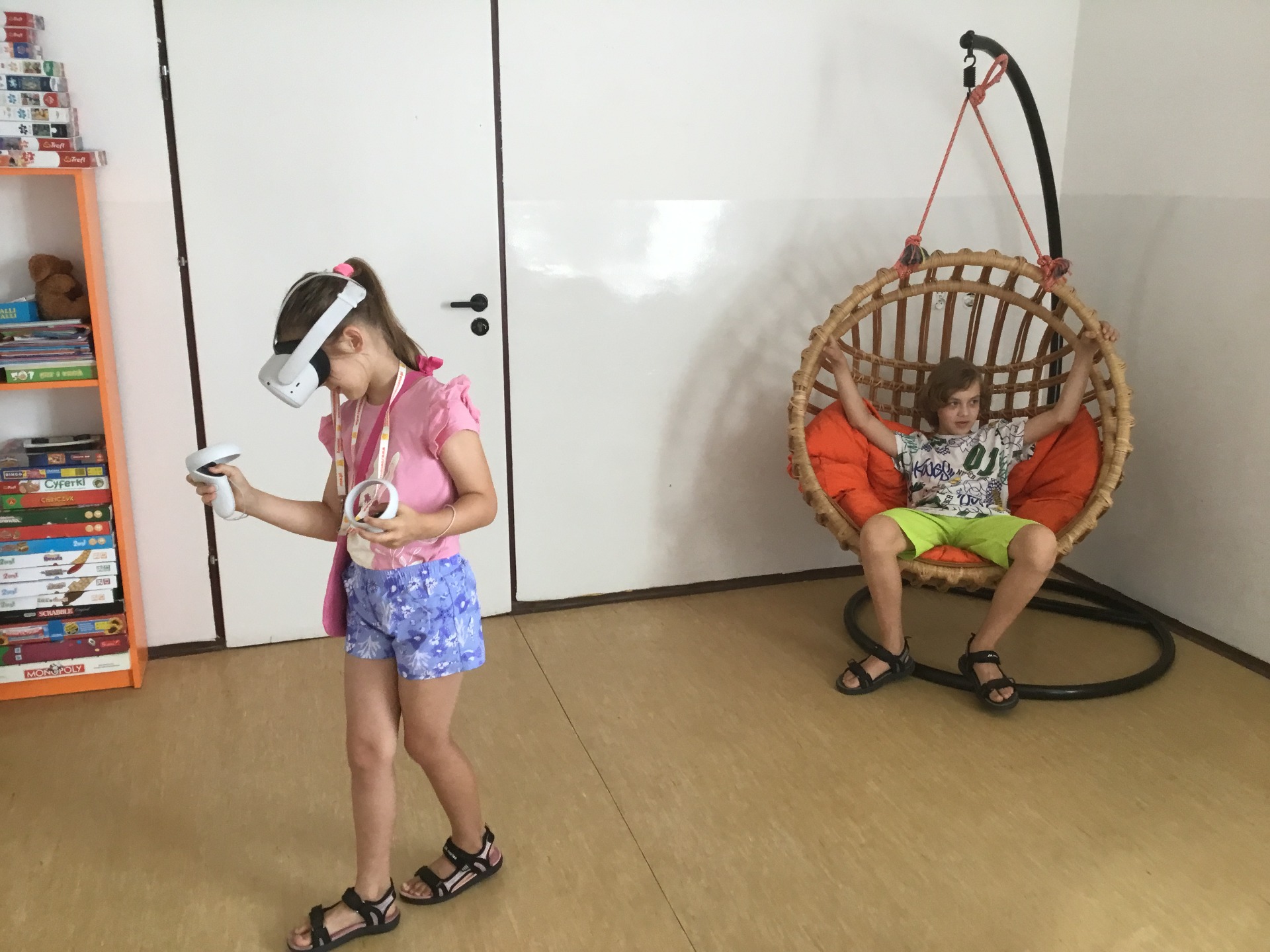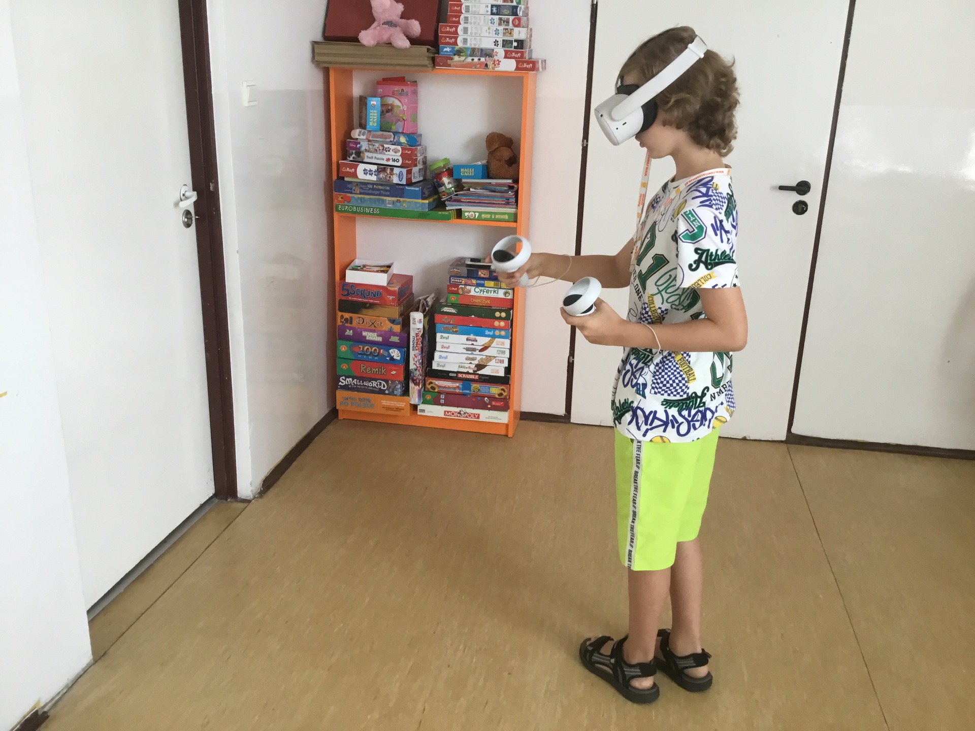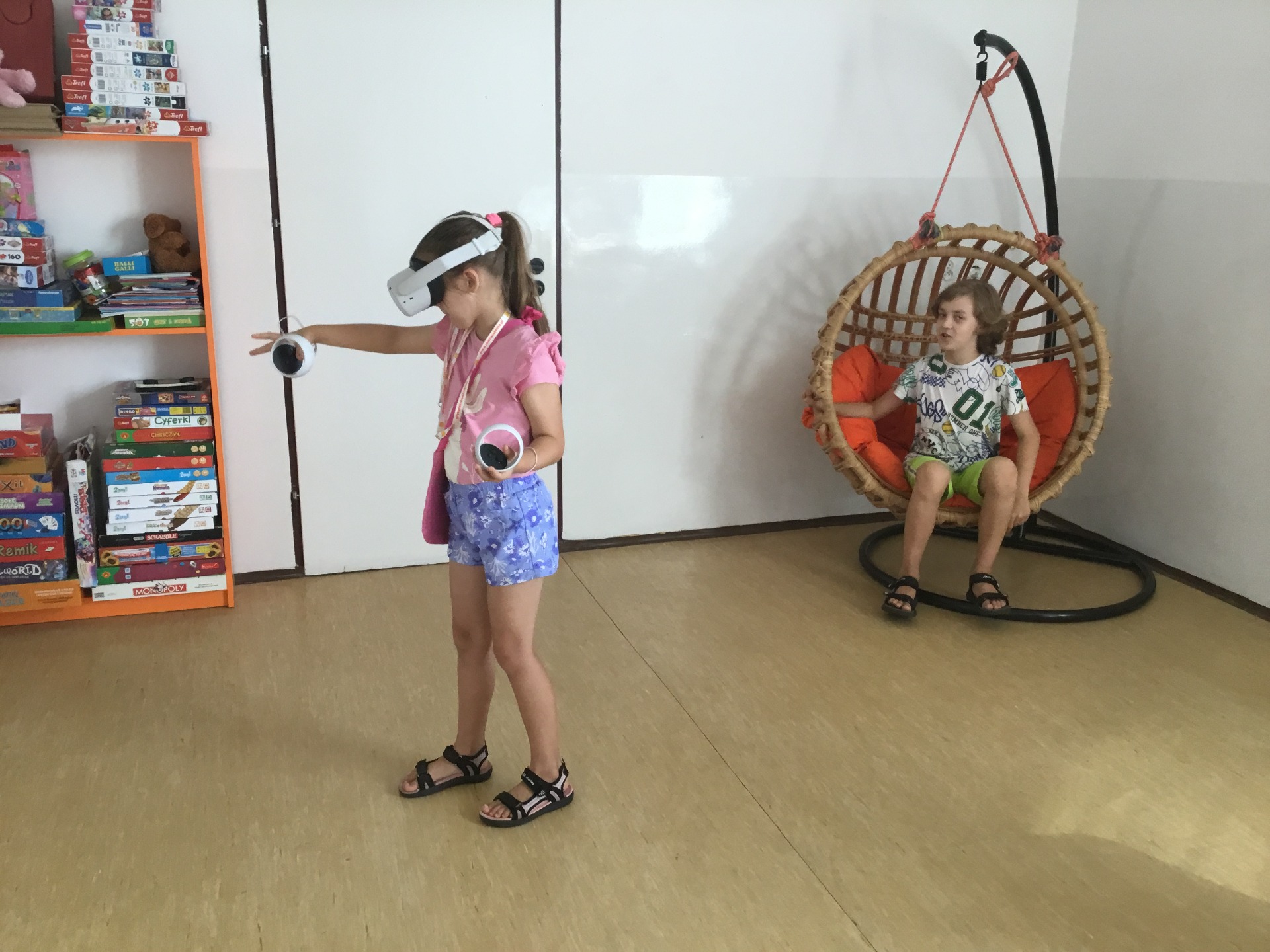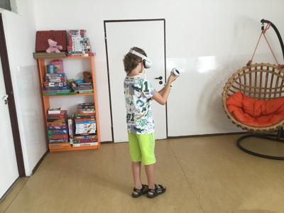 Podczas tych spotkań każdy może doświadczyć imersji tzn. całkowitego zanurzenia w danej aplikacji. Dobieramy dla dzieci aplikacje dostosowane do wieku a także jego potrzeb. Pierwszą aplikacją jest samouczek, który wprowadza dzieci w świat wirtualnej rzeczywistości. Po przejściu podstawowych instrukcji każde dziecko ma możliwość zagrać w wybraną przez siebie grę.