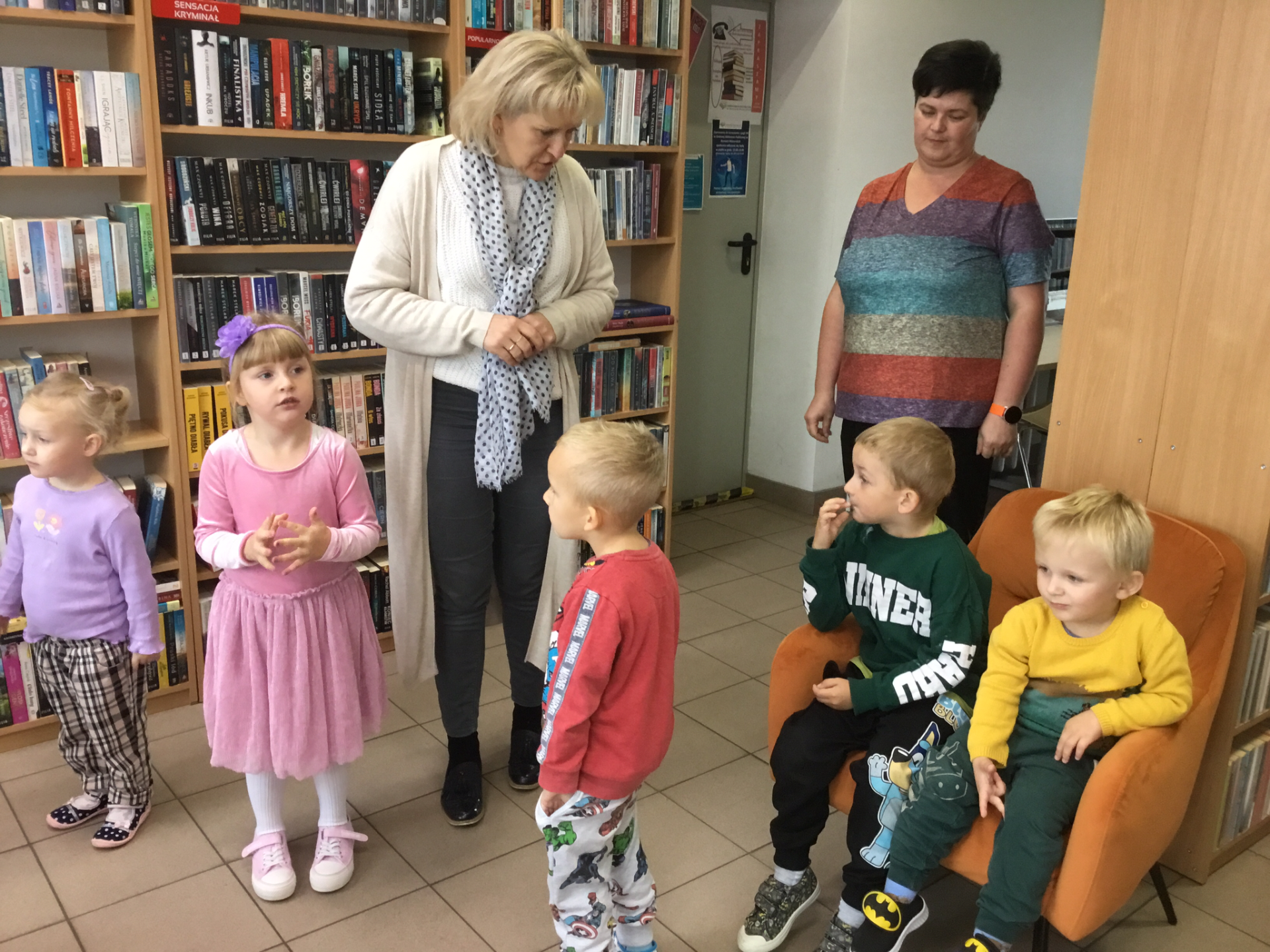 Dnia 4 października grupa przedszkolna 3-4 latki z Publicznego Przedszkola Samorządowego w Baniach Mazurskich odwiedziły bibliotekę.