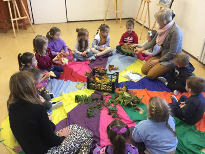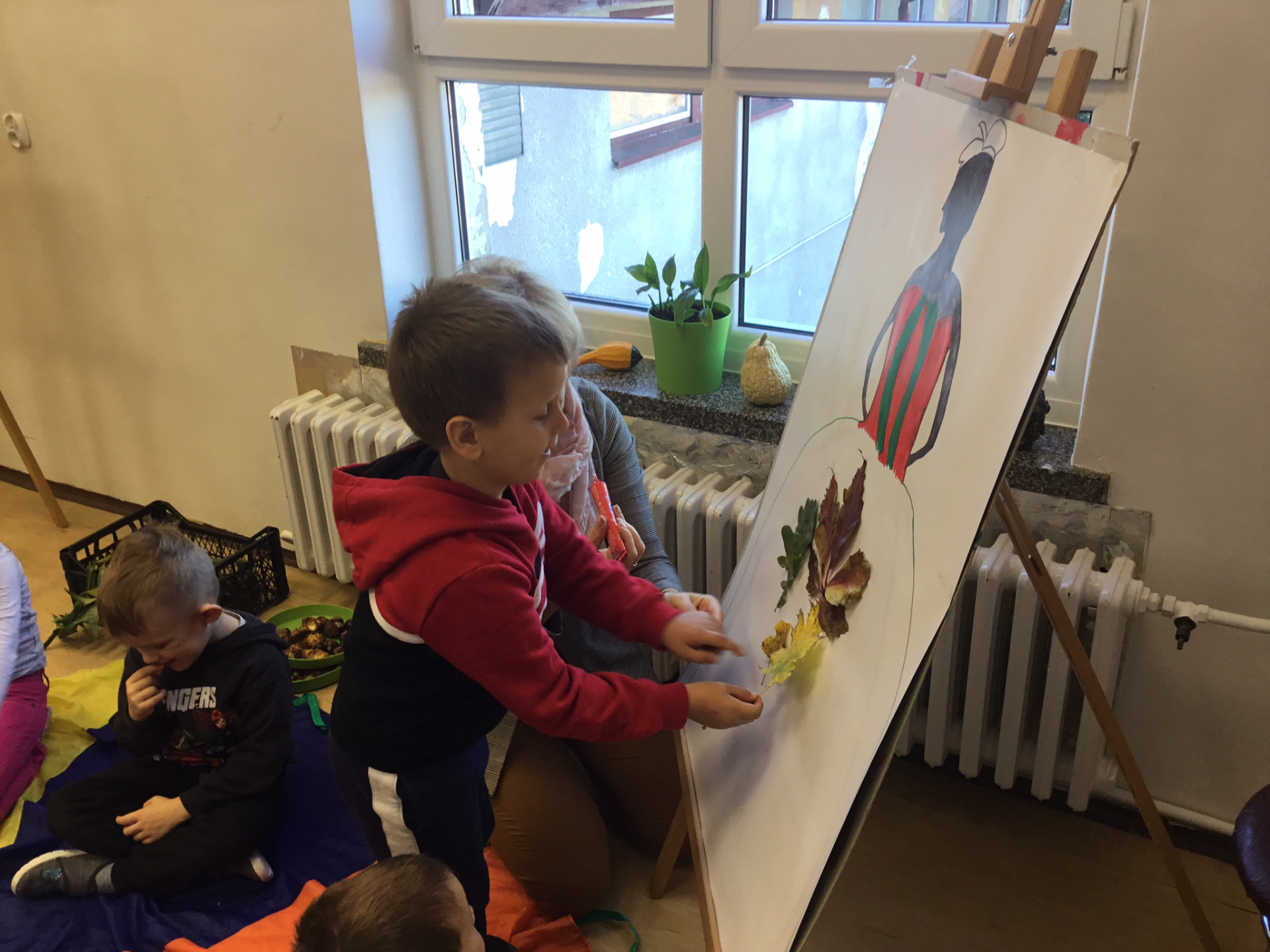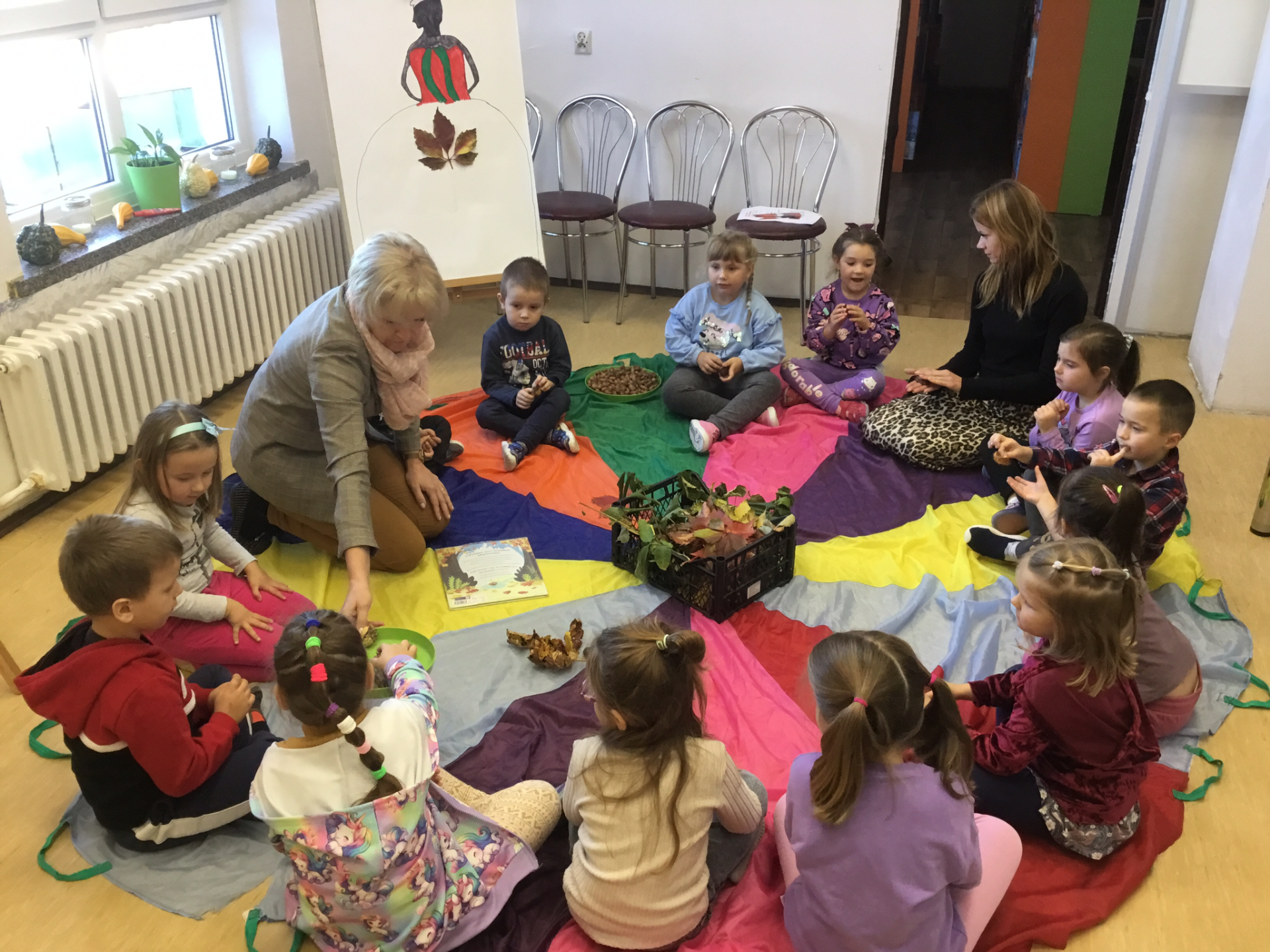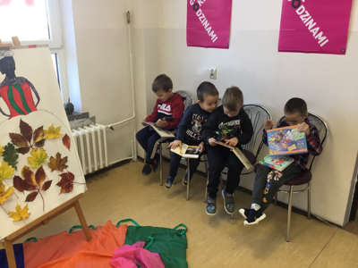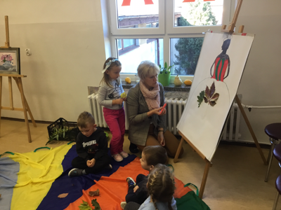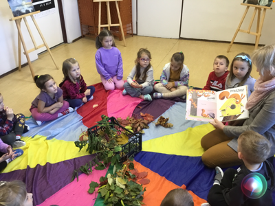 W środowe przedpołudnie 16 października spotkaliśmy się z jesienią w bibliotece. Na jesienne spotkanie przybyła grupa pięciolatków z Publiczne Przedszkole Samorządowe w Baniach Mazurskich. Zaprosiliśmy dzieci do rozmowy na temat jesieni. Przedszkolaki chętnie rozmawiały na tematy dotyczące tej pory roku, dzieliły się swoją wiedzą i spostrzeżeniami. Następnie wysłuchały bajki o "Złodzieju liści". Na zakończenie dzieci wspólnie stworzyły obraz pani jesieni, ubranej w piękną kolorową spódnicę z liści. Zaprosiliśmy również dzieci do wypożyczenia książek o tematyce jesiennej.
