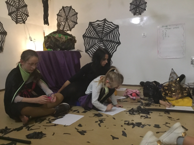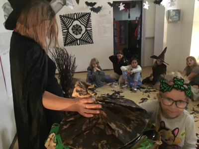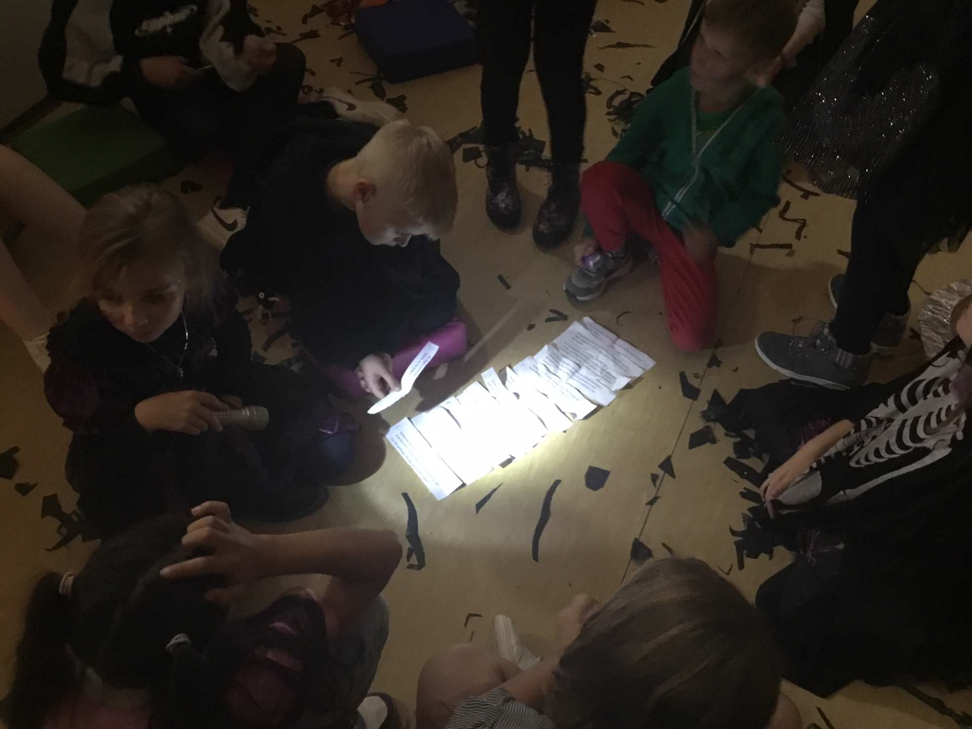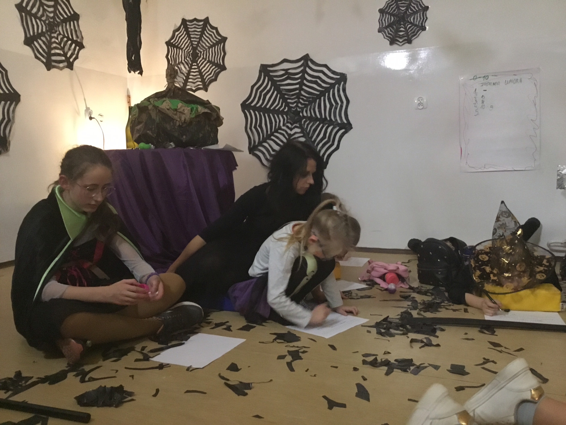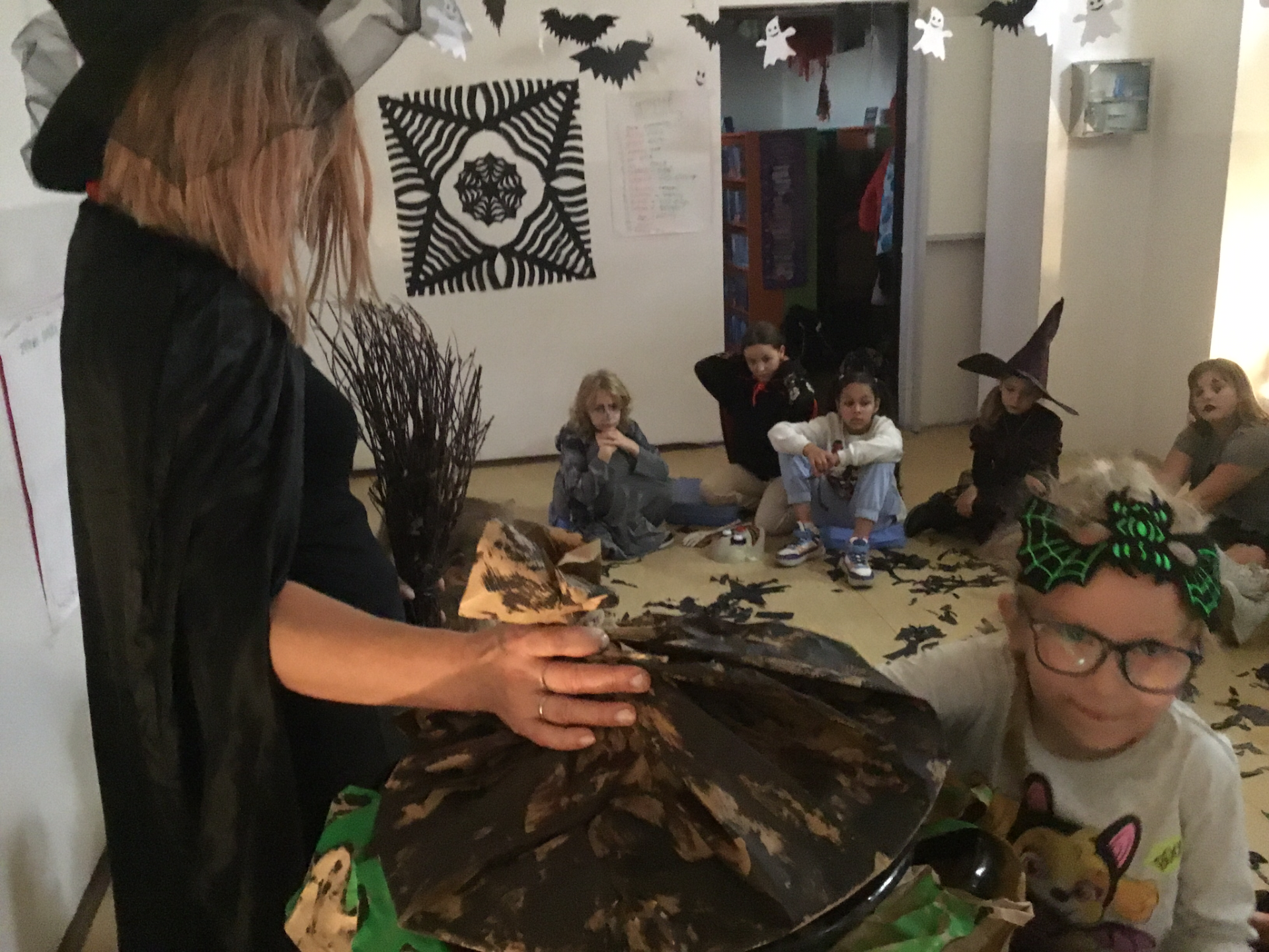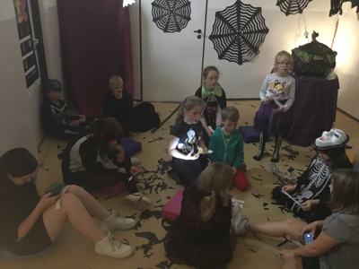 Historia całego spotkania przebiegła na podstawie scenariusza stworzonego przez panie bibliotekarki. Inspiracją do stworzonej zabawy dla dzieci była książka pt. "Operacja Kociołek czarownicy" Jørna Lier Horsta, to dwudziesty już tomik bestsellerowej serii niezwykłych przygód młodych detektywów. Dzieci miały wiele zadań do rozwiązania, trudnych, zagadkowych i pełnych strachu, ale świetnie sobie poradziły. Czarownica tym samym Upiór nie pozwalali dzieciakom ani na chwilę wytchnienia. Wieczór był pełen niespodzianek ukrytych w tajemniczym kociołku.