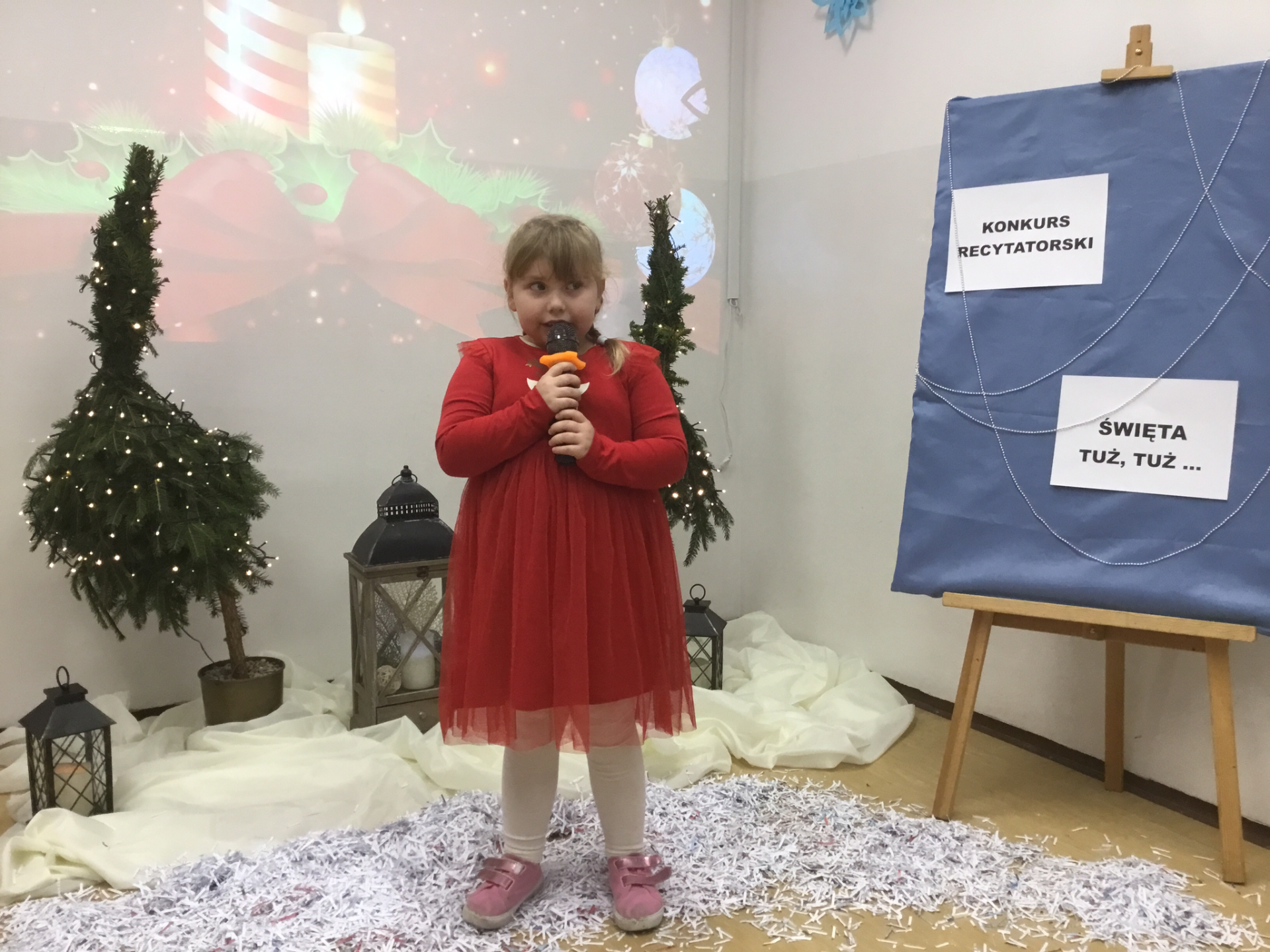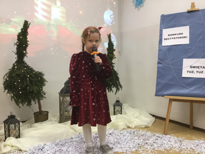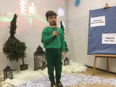 17 grudnia 2024 r. w Gminnej Bibliotece Publicznej w Baniach Mazurskich odbył się konkurs recytatorski "Święta tuż, tuż..." skierowany do dzieci z Publicznego Przedszkola Samorządowego w Baniach Mazurskich i Przedszkola "Bajkolandia" w Lisach zorganizowany przy współpracy z wychowawcami z Publicznego Przedszkola Samorządowego. Grupa 10 osób z poszczególnych oddziałów przedszkolnych zaprezentowała piękne wiersze, które wprowadziły nas w świąteczny klimat bożonarodzeniowy. Zgromadzona widownia oraz jury, mogło podziwiać występy naszych najmłodszych, wspaniałych artystów. Na zakończenie wszystkie dzieci otrzymały dyplomy i prezenty za udział w konkursie. Dziękujemy jury pani Mariannie Żuławskiej i pani Jadwidze Abramowicz za poświęcony czas.