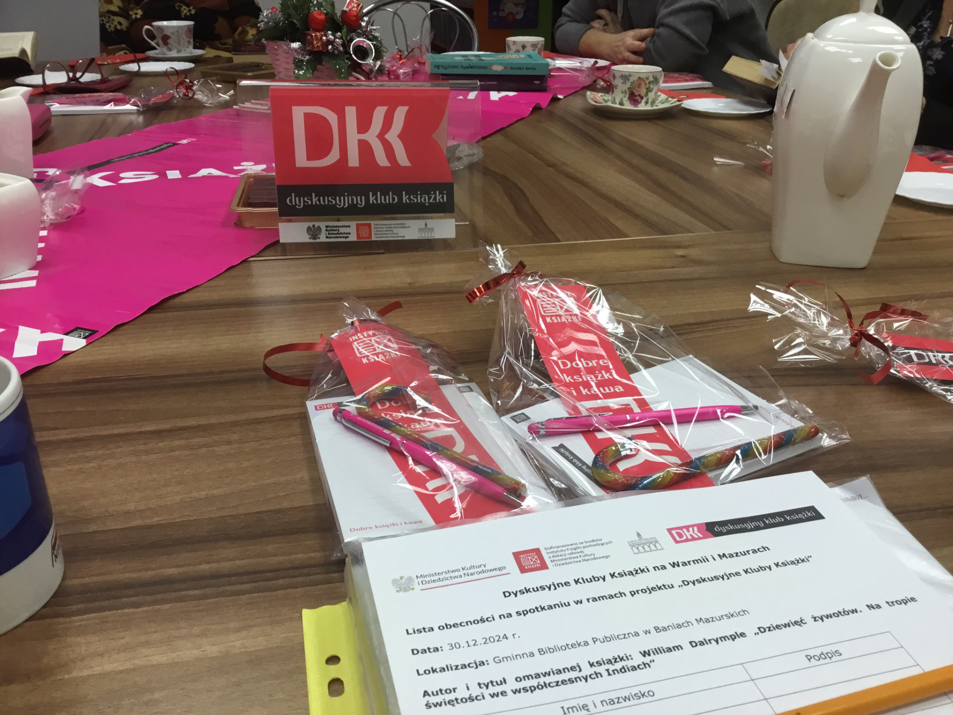 We wtorkowe popołudnie 30 grudnia, odbyło się spotkanie Dyskusyjnego Klubu Książki. Każdej uczestniczce zostały wręczone drobne upominki – zestaw klubowych gadżetów z słodką niespodzianką. Panie rozmawiały o książce Williama Dalrymple "Dziewięć żywotów". Na tropie świętości we współczesnych Indiach". Książka zaprasza czytelników na niezwykłą podróż przez serce Indii, gdzie religia, kultura i ludzkie doświadczenia splatają się w niezwykły sposób. To książka, która wzbogaca nasze rozumienie różnorodności religijnej i kulturowej oraz skłania do refleksji nad własnymi przekonaniami i tożsamością.