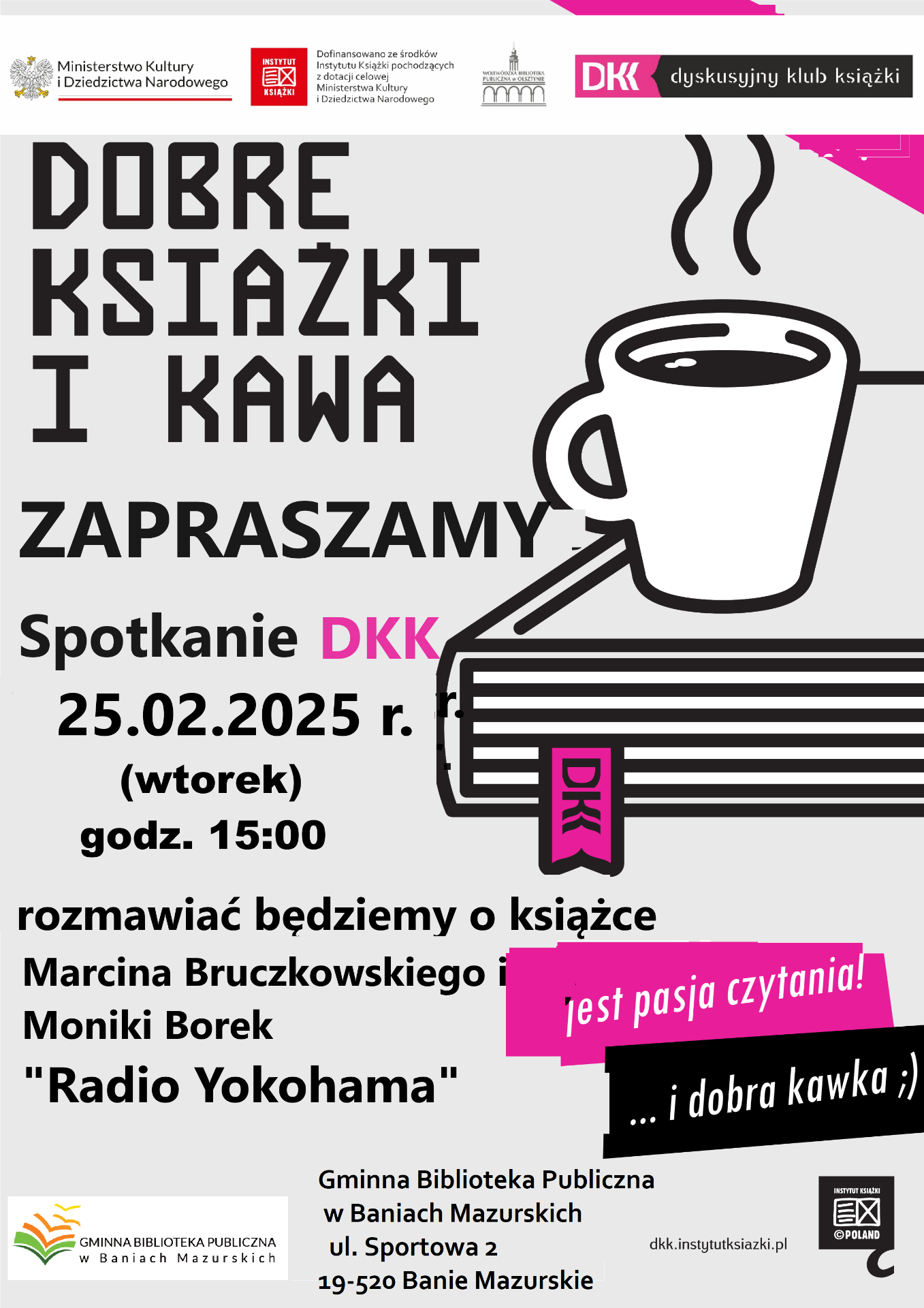 Zapraszamy na lutowe spotkanie DKK Już 25 lutego 2025 r. zapraszamy na kolejne spotkanie DKK o godz. 15:00 Drukuj Kopiuj link Facebook.com X.com Data publikacji: 28.02.2025 godz. 15:30 Wyświetlono: 25 Kategoria: Aktualności Tematyka: 2025 Tematyka: DKK Tematyka: Luty Zobacz również Zobacz więcej 28.02.2025 Aktualności 2025 Luty ❤️Walentynki w Gminnej Bibliotece Publicznej w Baniach... 14 lutego obchodzimy coroczne Święto Zakochanych. To świetna okazja, by zakochać się także w czytaniu W tym dniu nie zawiedli nas miłośnicy książek i licznie odwiedzili naszą bibliotekę.... 28.02.2025 Aktualności 2025 Luty Mała książka - Wielki człowiek Akcja Mała książka – Wielki człowiek jest realizowana... Gratulujemy naszym aktywnym Małym Czytelnikom. Kampania Mała książka – wielki człowiek jest realizowana w bibliotece. Każde dziecko w wieku przedszkolnym 3-6 lat otrzymuje nieodpłatnie Wyprawkę Czytelniczą... 28.02.2025 Aktualności 2025 Luty Wirtualna rzeczywistość w bibliotece. Gogle VR dostępne... Każdy użytkownik, który założy okulary może wejść do wirtualnego świata, poruszać się po nim, a także może operować wirtualnymi przedmiotami. Zapraszamy wszystkich chętnych indywidualnie do korzystania...