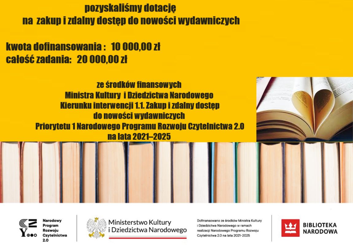 Dofinansowano ze środków finansowych Ministra Kultury i Dziedzictwa Narodowego w ramach realizacji Narodowego Programu Rozwoju Czytelnictwa 2.0 na lata 2021-2025.