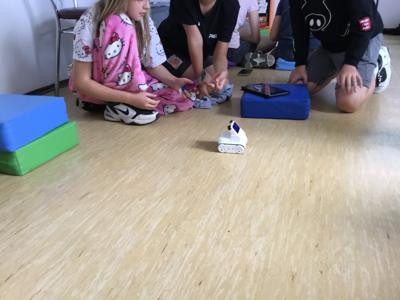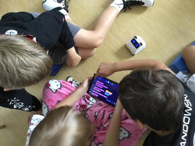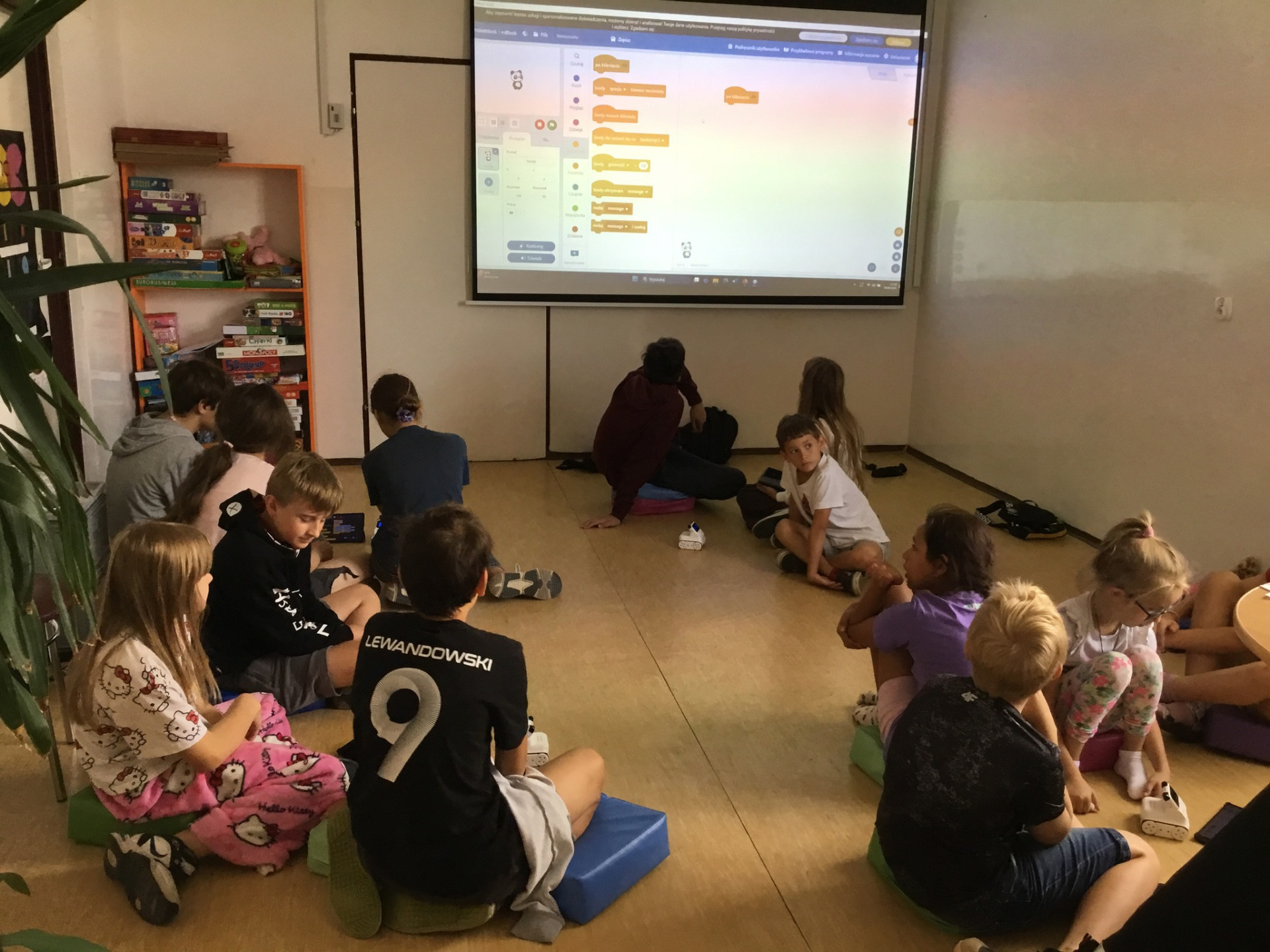 Zajęcia z programowania, robotyki i projektowania aplikacji poprowadziły wolontariuszki Marysia i Hania studentki z Politechniki Gdańskiej, które przybliżyły uczestnikom świat programowania i nowych technologii.