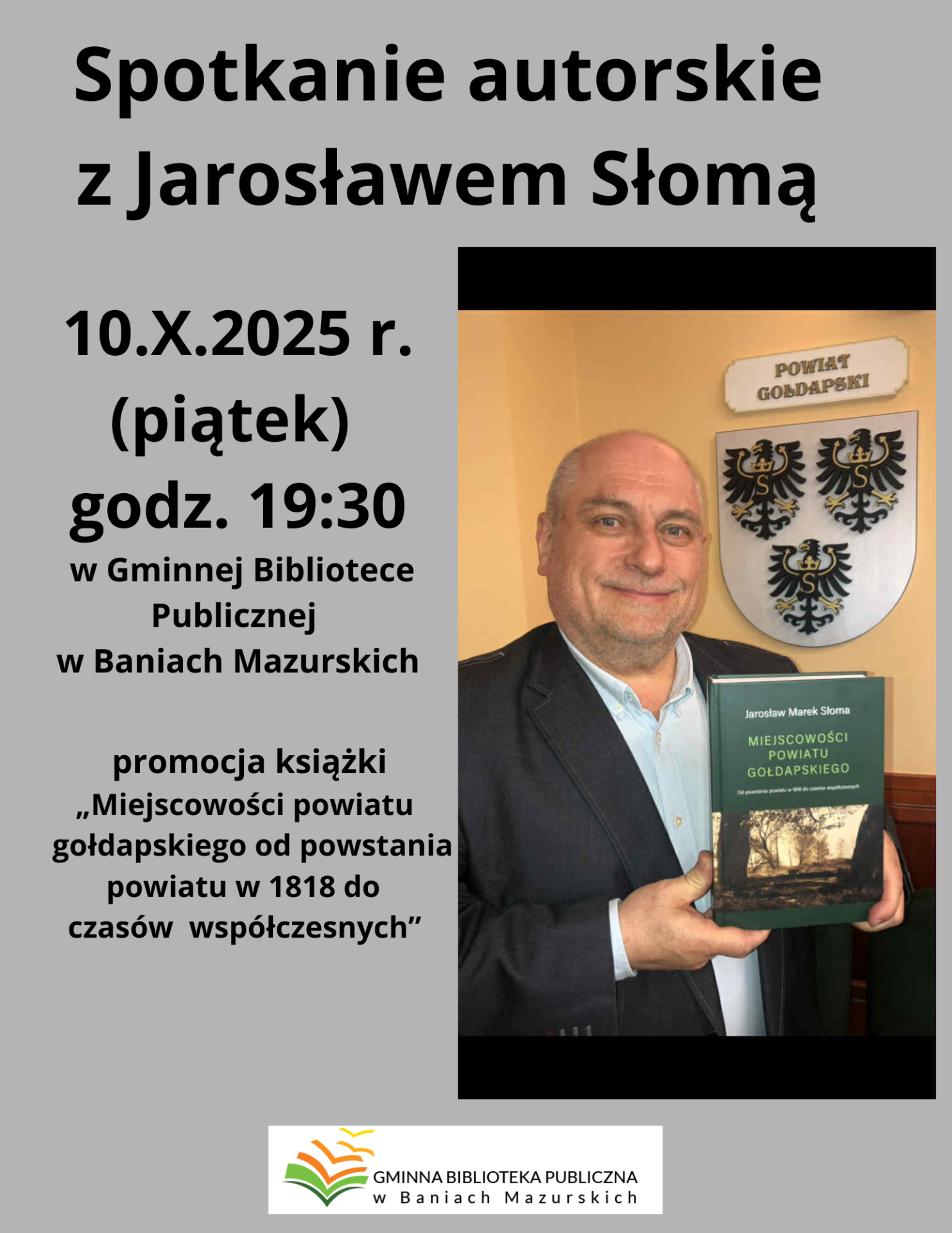 W ramach Nocy Bibliotek Gminna Biblioteka Publiczna w Baniach Mazurskich pod hasłem - Do dzieła organizuje ciekawe, inspirujące spotkanie autorskie z Jarosławem Słomą- historykiem, samorządowcem, publicystą, a przede wszystkim autorem niezwykłej książki „Miejscowości Powiatu Gołdapskiego”, której wydawcą jest Fundacja Puszczy Rominckiej.
