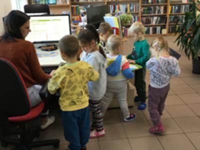 Pierwsza wizyta dzieci z grupy przedszkolnej 3-4 latków w bibliotece