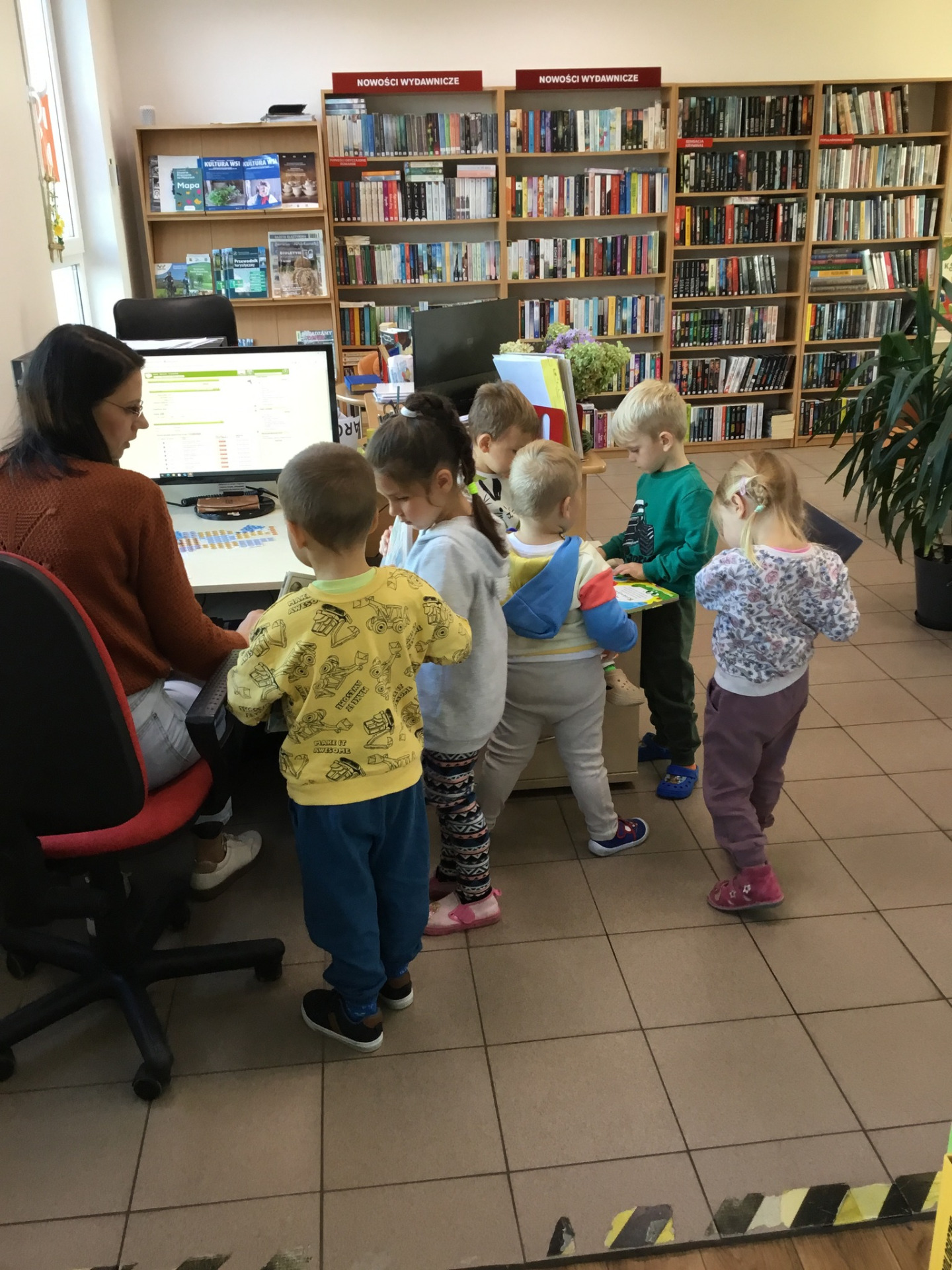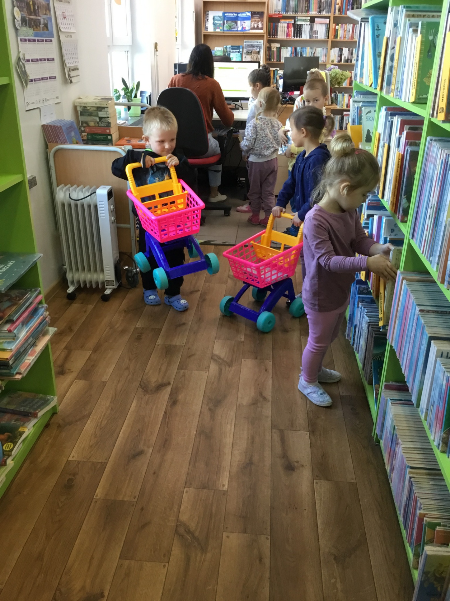 Dzieci były zachwycone księgozbiorem dla najmłodszych. Z wielką ciekawością przeglądały książeczki, odkrywając bohaterów znanych bajek i zupełnie nowe opowieści. Spotkanie było nie tylko okazją do zabawy, ale także do nauki – przedszkolaki poznały zasady korzystania z biblioteki, dowiedziały się jak dbać o książki oraz jak wygląda proces ich wypożyczania.