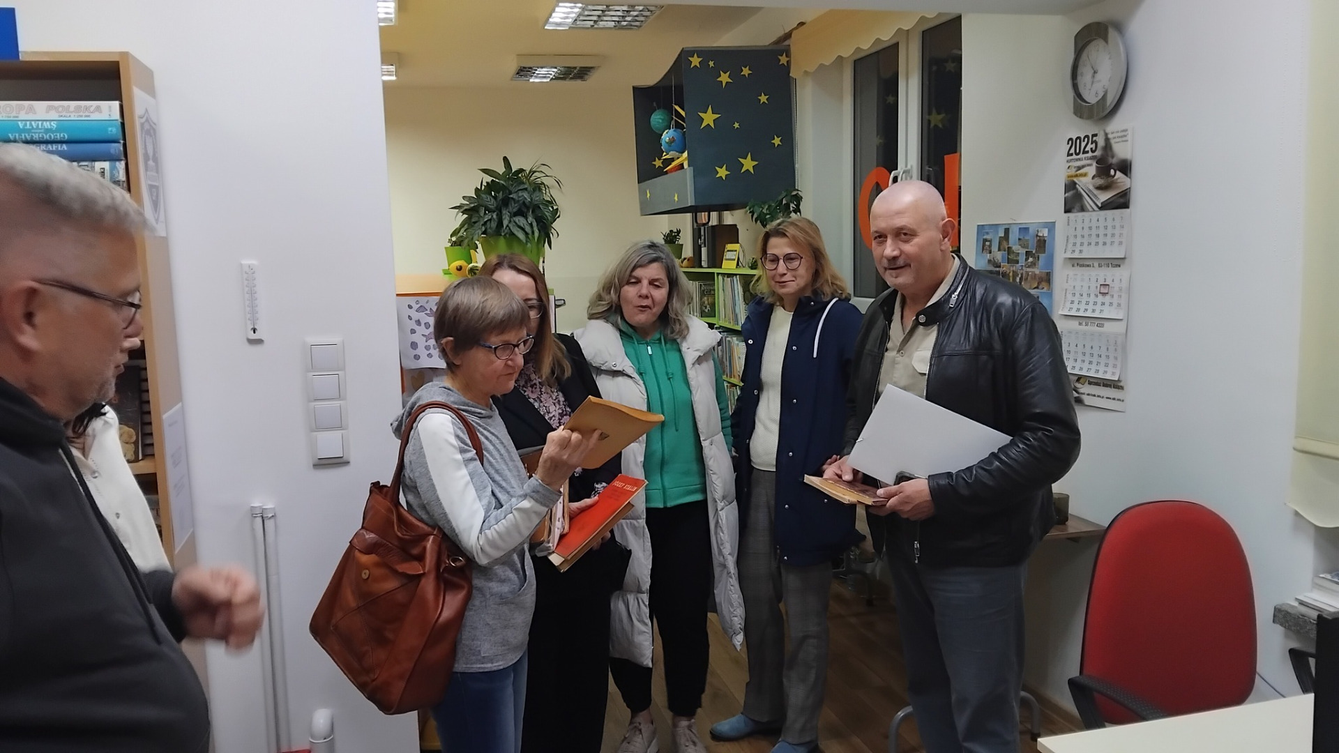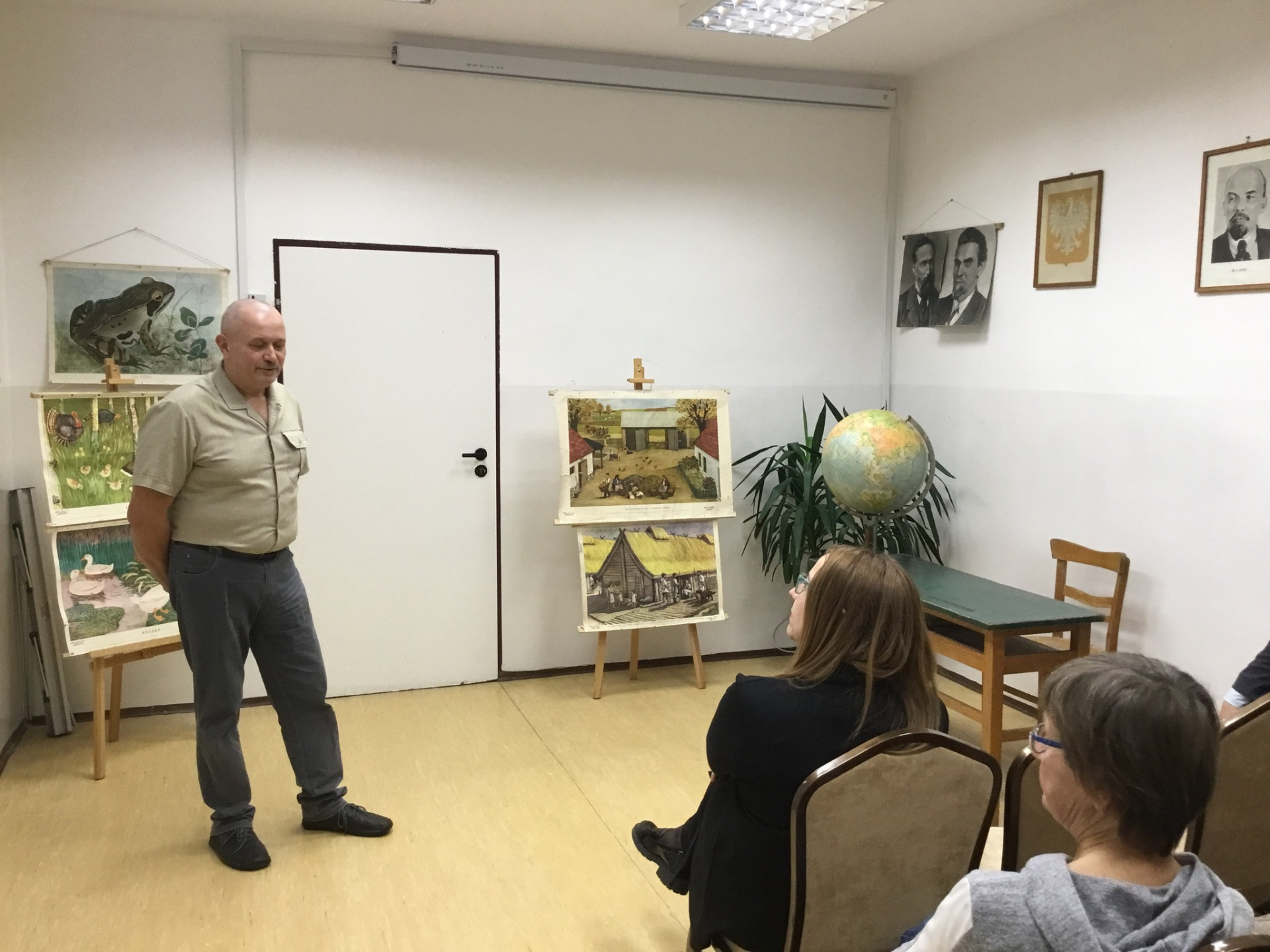 Spotkanie rozpoczęliśmy od przedstawienia wystawy poświęconej historii szkół z okresu komunistycznego działających na terenie gminy Banie Mazurskie, którą przedstawił kolekcjoner i pasjonat Jan Werchowicz. Scenerię stanowiły m.in. stolik uczniowski, plansze poglądowe oraz portrety, które przed 89. rokiem obowiązkowo musiały wisieć na ścianach klas. Było też godło – orzeł bez korony. Podczas spotkania jedna z czytelniczek naszej biblioteki - pani Wiesława - zaprezentowała lektury szkolne, które obowiązywały w latach pięćdziesiątych.