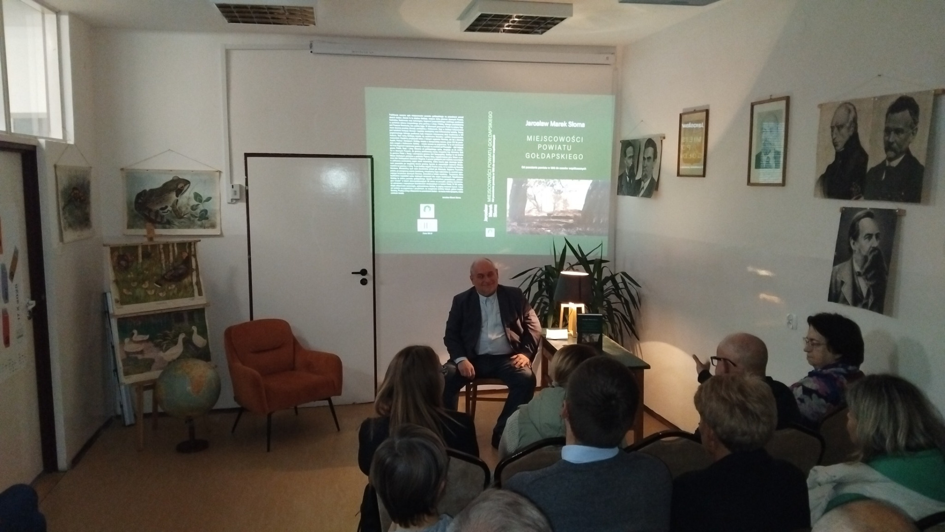 Następnie wszystkich gości zaprosiliśmy na spotkanie autorskie z Jarosławem Słomą - historykiem, samorządowcem i gołdapianinem. Pan Jarosław Słoma zaprezentował swoją najnowszą książkę, o której już jest głośno w regionie, czyli „Miejscowości powiatu gołdapskiego od powstania powiatu w 1818 roku do czasów współczesnych". Ta monumentalna publikacja jest skarbnicą wiedzy nie tylko na temat pochodzenia nazw wspomnianych w tytule. Zwiera też wiele faktów historycznych.