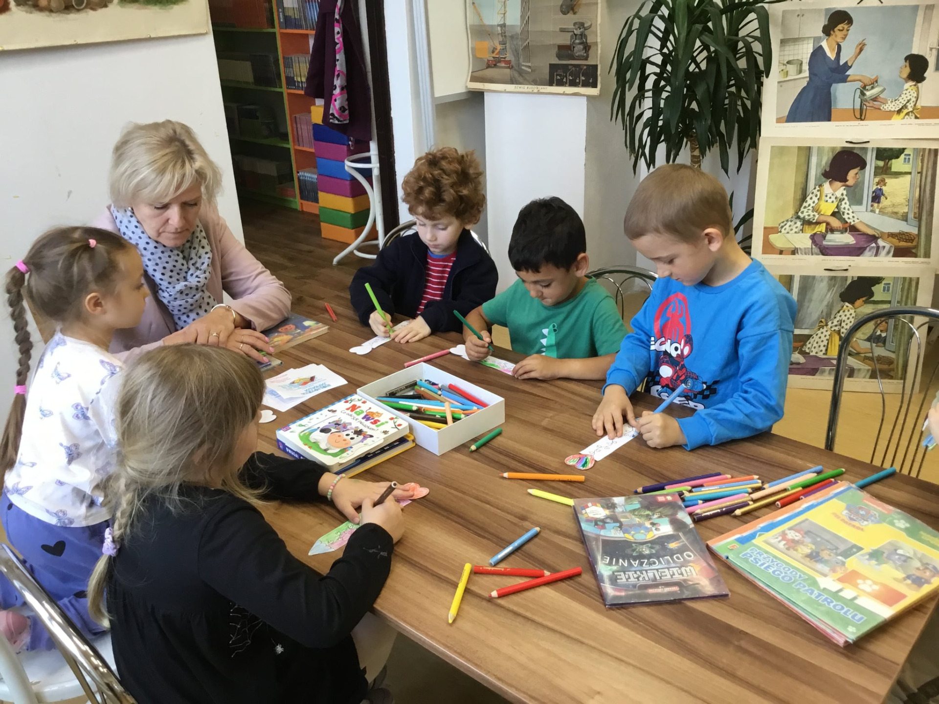 Dzieci zwiedziły bibliotekę, poznały wypożyczalnię dla dorosłych i były zachwycone księgozbiorem dla najmłodszych. Poznały zasady korzystania z biblioteki, dowiedziały się, jak dbać o książki oraz jak wygląda proces ich wypożyczania. Z wielką ciekawością przeglądały książeczki, odkrywając bohaterów znanych bajek. Spotkanie było nie tylko okazją do zabawy, ale także do nauki.