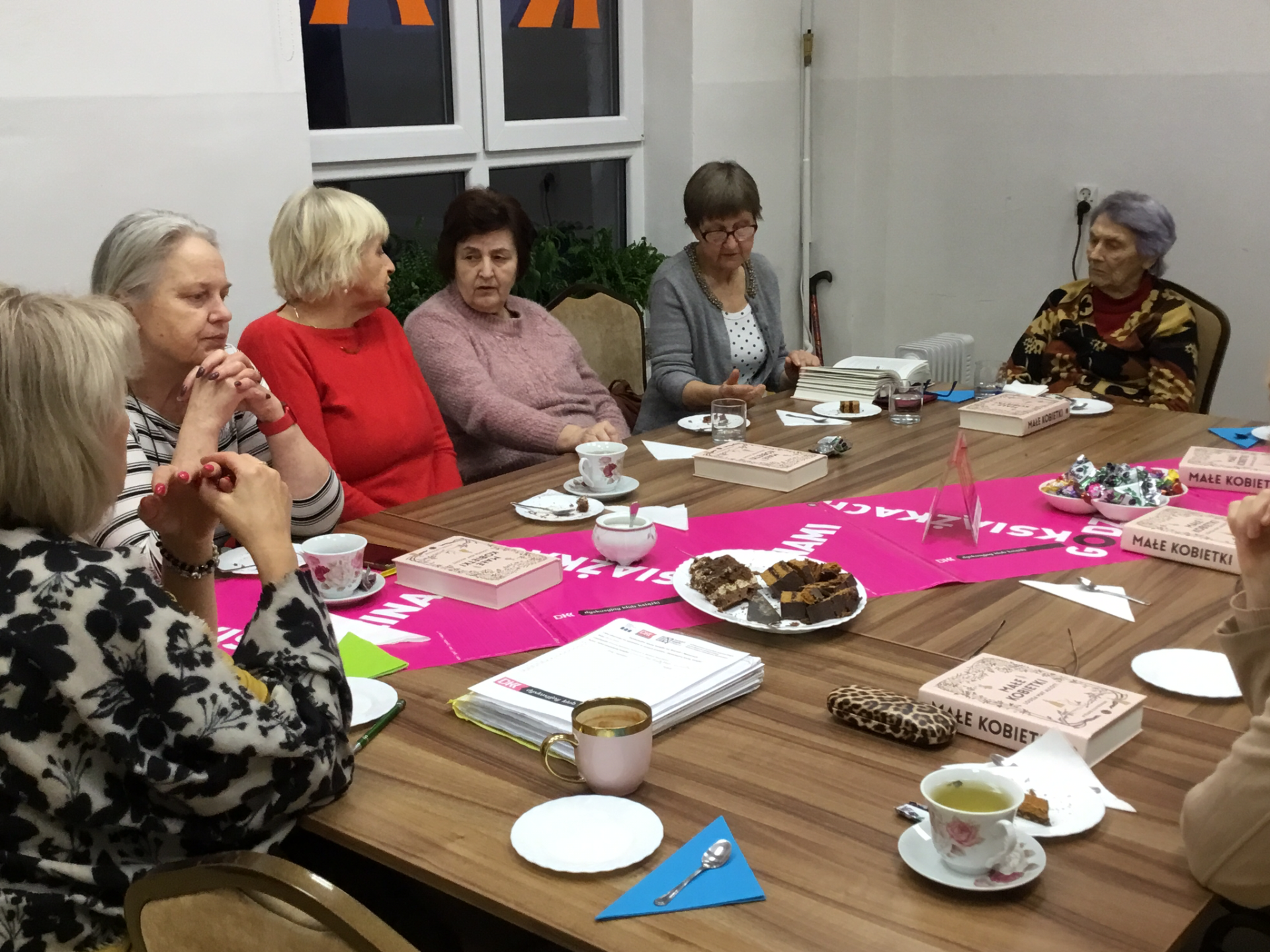 25 listopada w Gminne Bibliotece Publicznej w Baniach Mazurskich odbyło się kolejne spotkanie DKK, podczas którego panie omawiały klasyczną powieść Louisy May Alcott pt. "Małe Kobietki". Powieść z 1868 roku przedstawia losy czterech sióstr, ich ojciec jest pastorem, walczy w wojnie secesyjnej. Wcześniej stracił majątek, rodzina jest biedna. Matka, zwana Marmisią, prowadzi dom przy pomocy służącej Hanny. Dwie najstarsze córki pracują, Meg jako guwernantka, Jo jako dama do towarzystwa bogatej ciotki. To bardzo ogólny zarys treści tej książki, liczącej sobie ponad 500 stron, pięknie wydanej, ilustrowanej zdjęciami z filmu z 2019 roku. Wszystkie panie przeczytały całość, choć, jak przyznały niektóre, ciężko było przedzierać się przez często irytujący infantylizm, banalność i ckliwość opisów. Powieść się przestarzała i wiele zawartych w niej uwag i rad jest już nie aktualna, nie pasyje do czasów teraźniejszych. Pojawiła się też sugestia, że może to panie, klubowicze, są na nią za stare. Pani Regina słusznie zauważyła, że gdybyśmy przeczytali ją w fazie fascynacji Anią Shirey, może by nam się bardziej podobała. Choć i teraz podnoszone były głosy w jej obronie. Część osób podkreślała ładnie pokazany klimat relacji rodzinnych w domu Marchów, serdeczne więzi łączące siostry, praktyczność rad dawanych im przez matkę, wreszcie ciekawe charaktery dziewcząt, dość niezależnych, jak na tamte czasy.