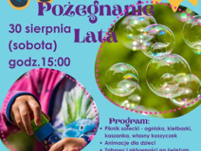 19.08.2025 Aktualności 2025 Sierpień Pożegnanie lata w Widgirach Zapraszamy mieszkańców na piknik sołecki - Pożegnanie Lata w Widgirach. Wiata sołecka 30 sierpnia godz. 15:00